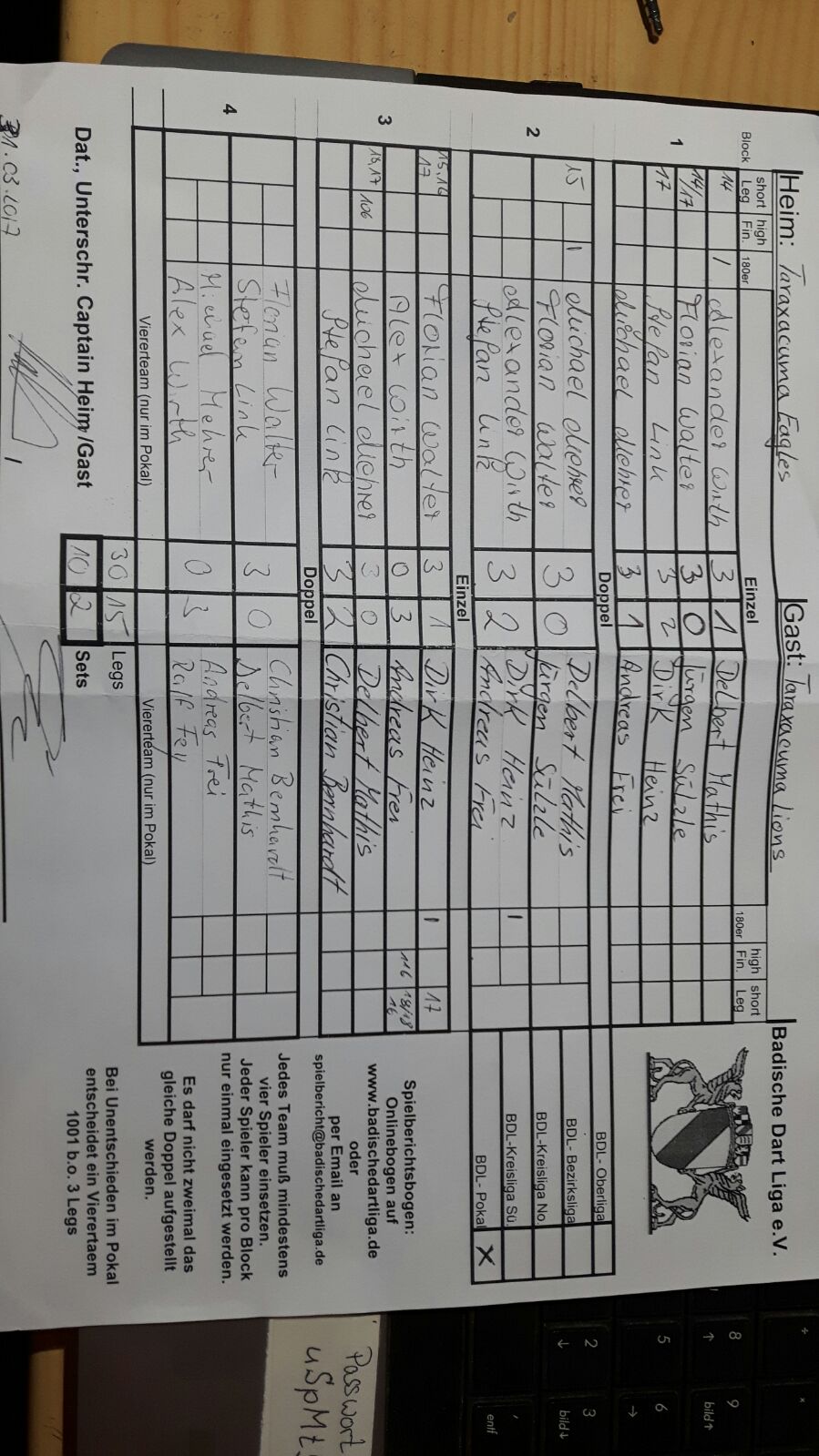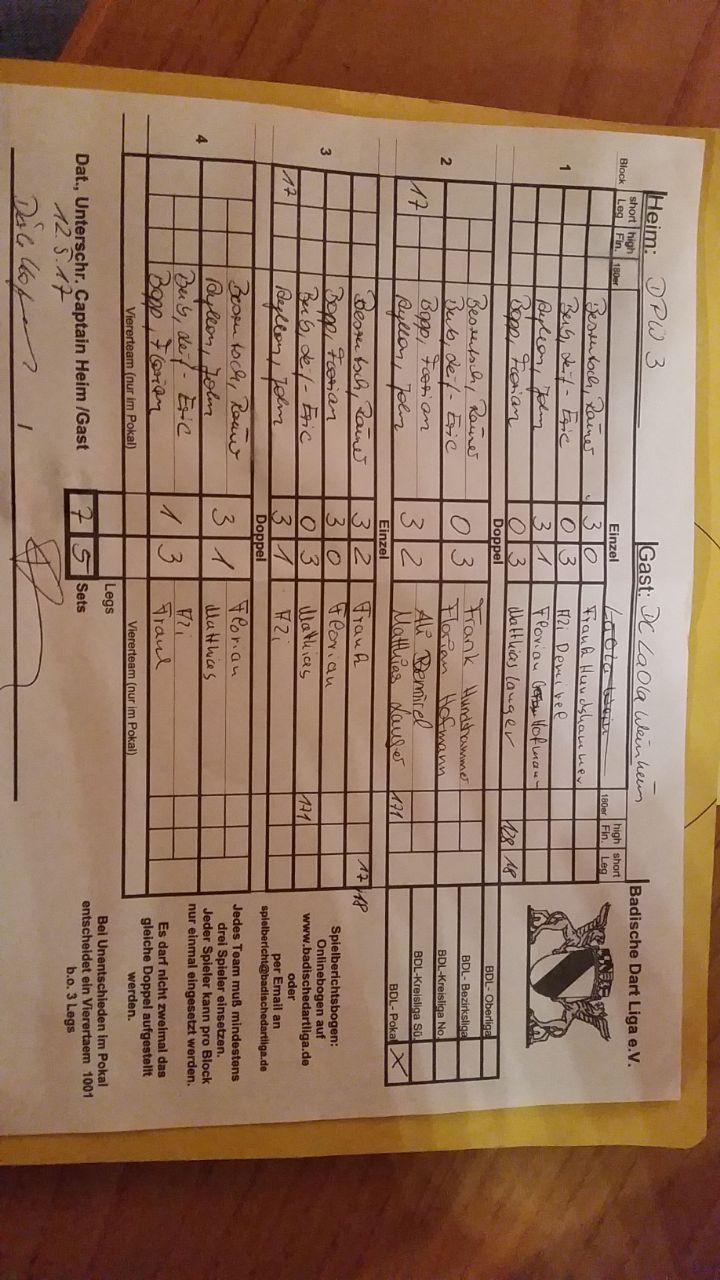 | Dartspub III | 7 : 5 | Laola Weinheim |