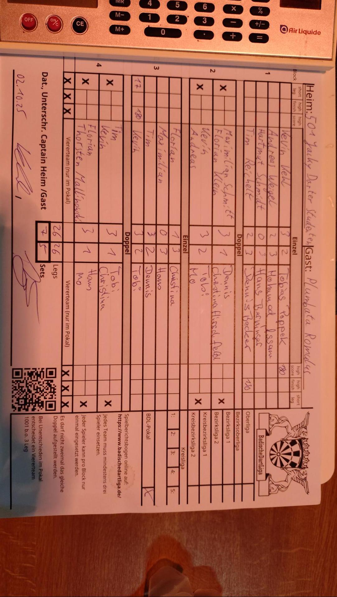 Ergebnis: | 26 : 26 | - Legs | ||||||
