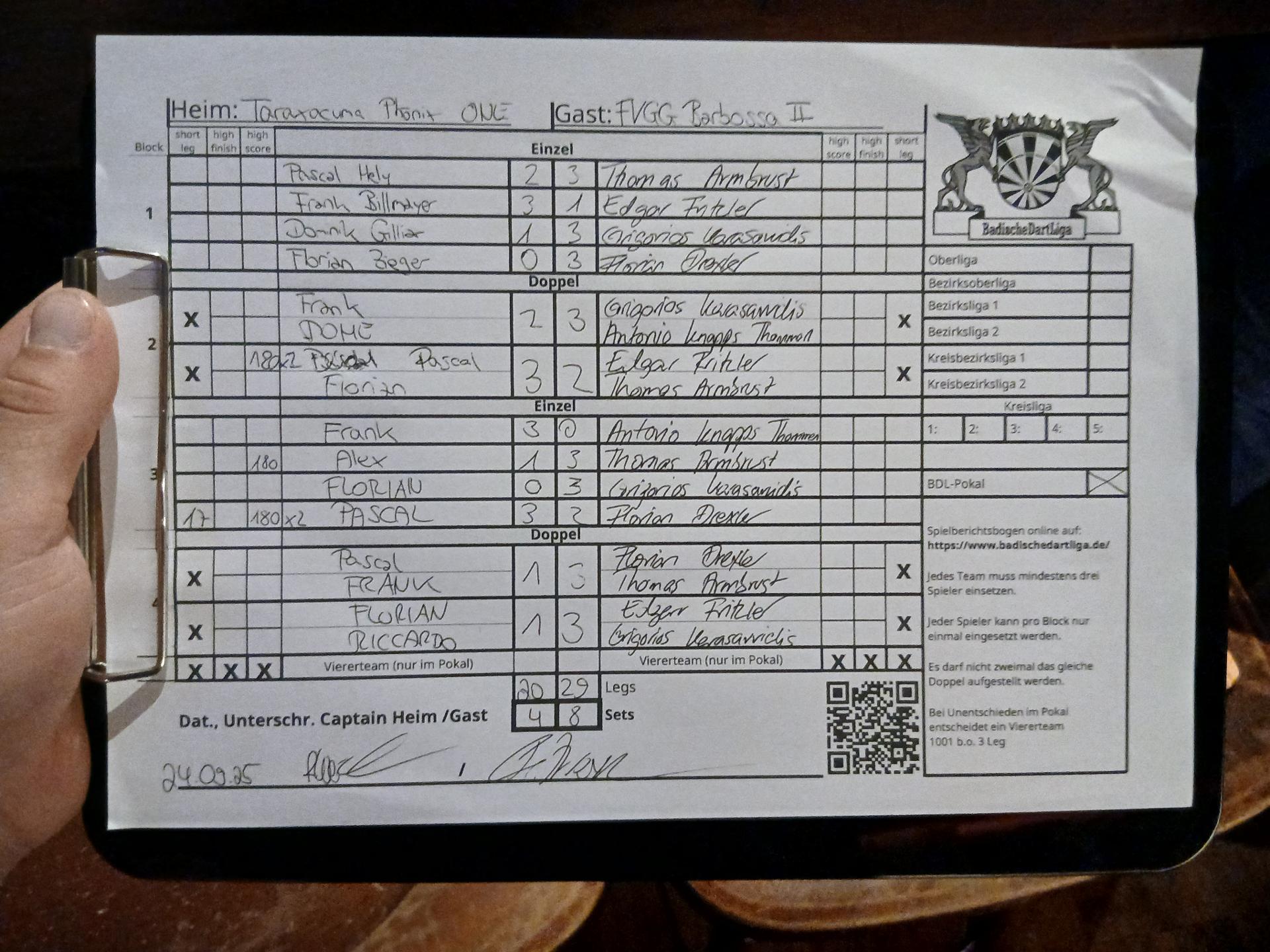 Ergebnis: | 20 : 29 | - Legs | ||||||