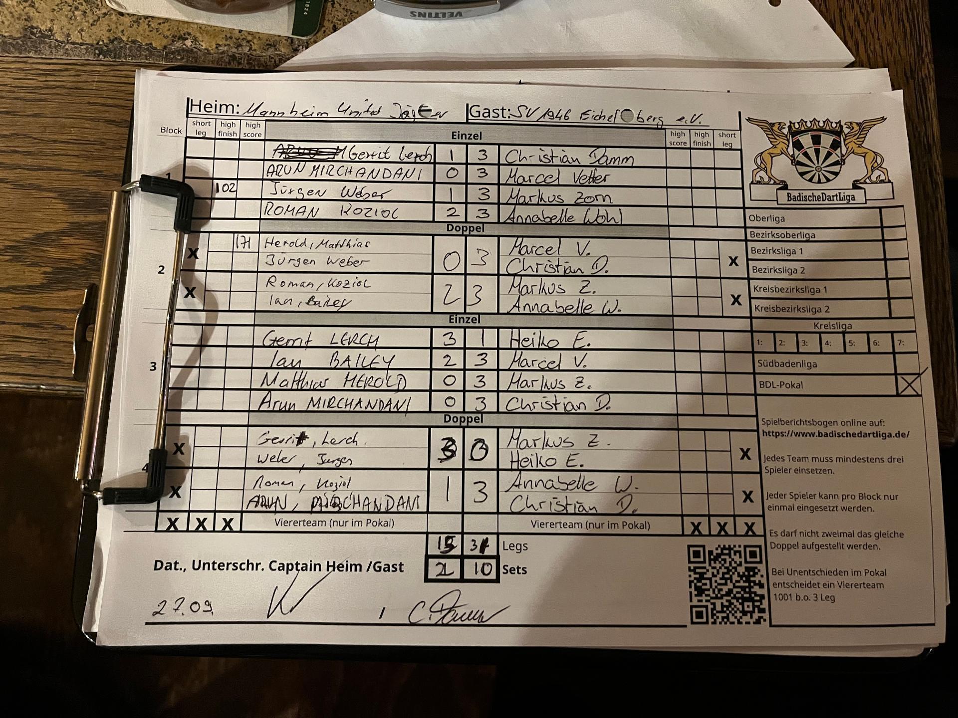 HEIM: | Mannheim United Jäger | GAST: | Dart Team Eichelberg | |||||