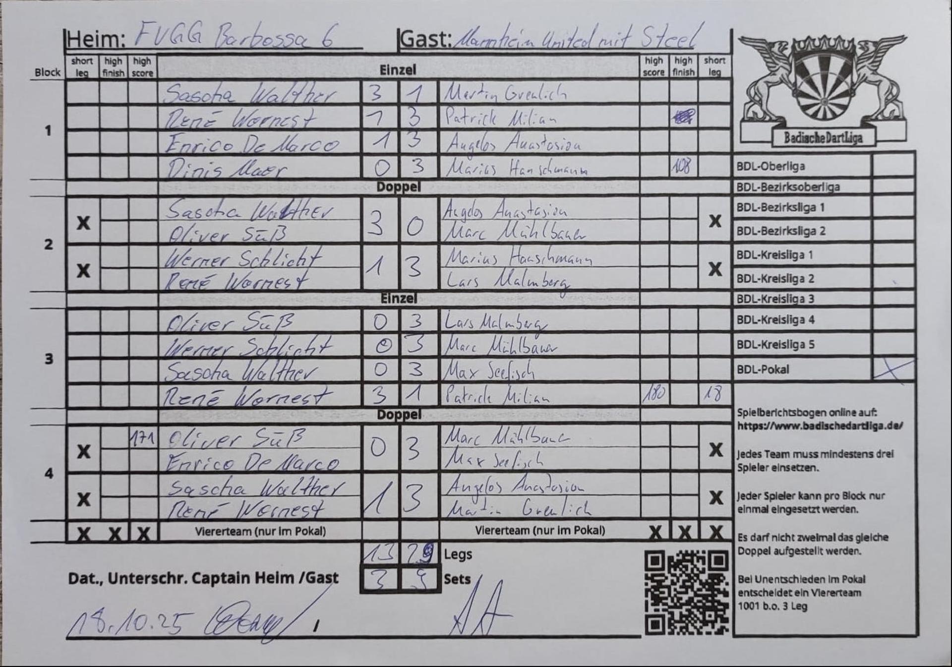 | HEIM: | FVgg Neudorf Barbossa 6 | GAST: | Mannheim United mit Steel | |||||