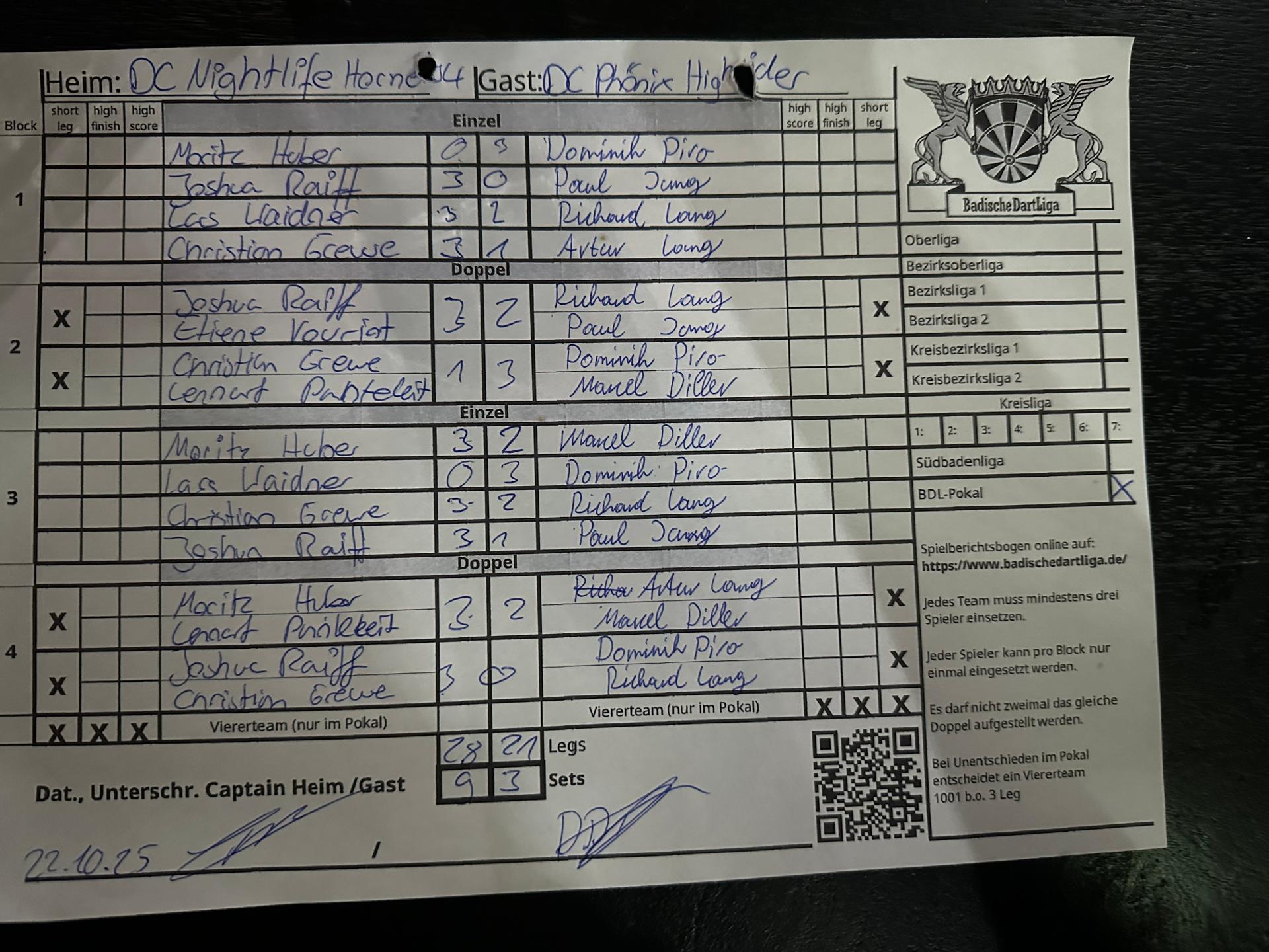 | Ergebnis: | 28 : 21 | - Legs | ||||||