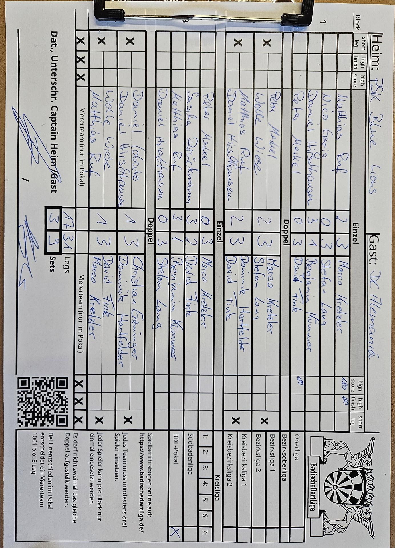 | Ergebnis: | 17 : 31 | - Legs | ||||||
