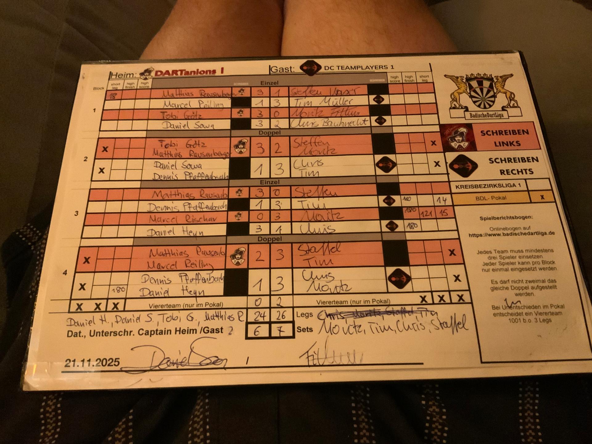| HEIM: | DC DARTanions 1 | GAST: | Teamplayers 1 | |||||