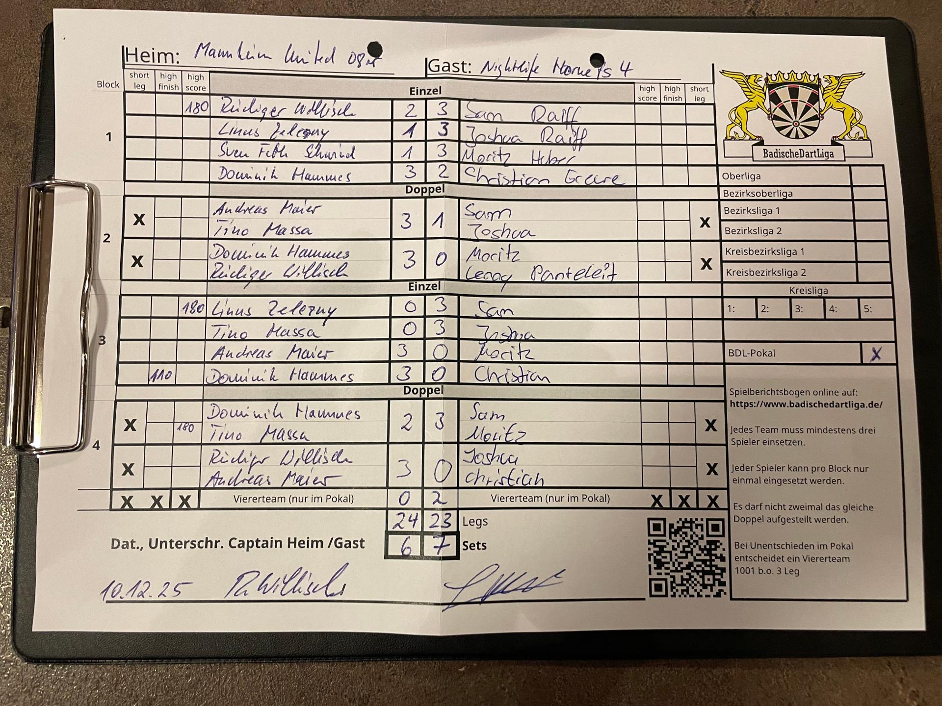 | Ergebnis: | 24 : 23 | - Legs | ||||||