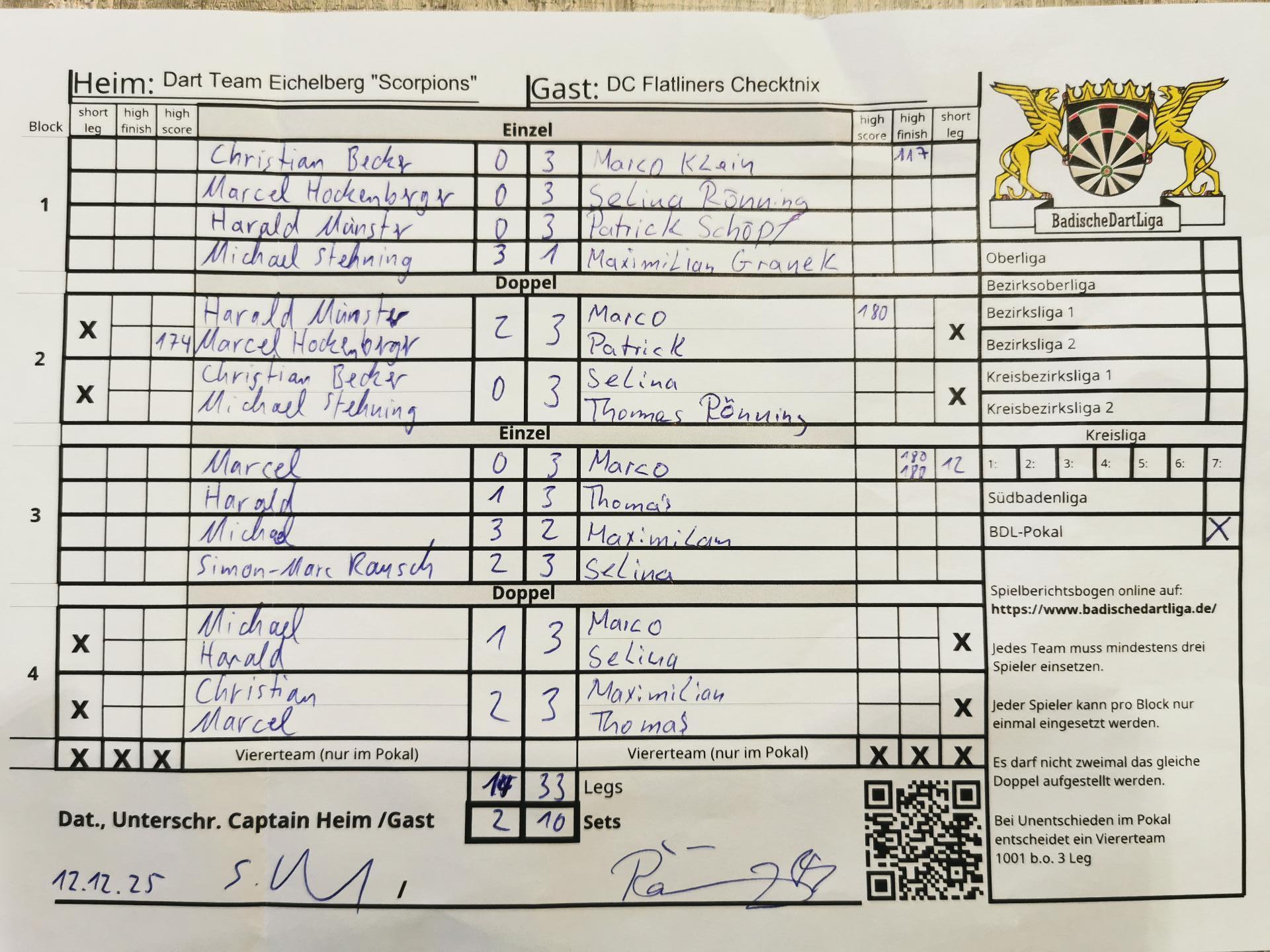 | HEIM: | Dart Team Eichelberg "Scorpions" | GAST: | DC Flatliners Checktnix | |||||