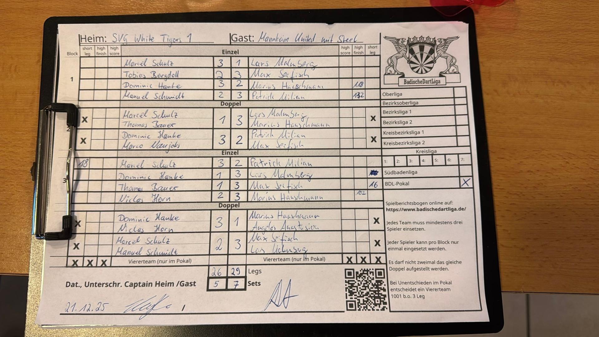 | Ergebnis: | 26 : 29 | - Legs | ||||||