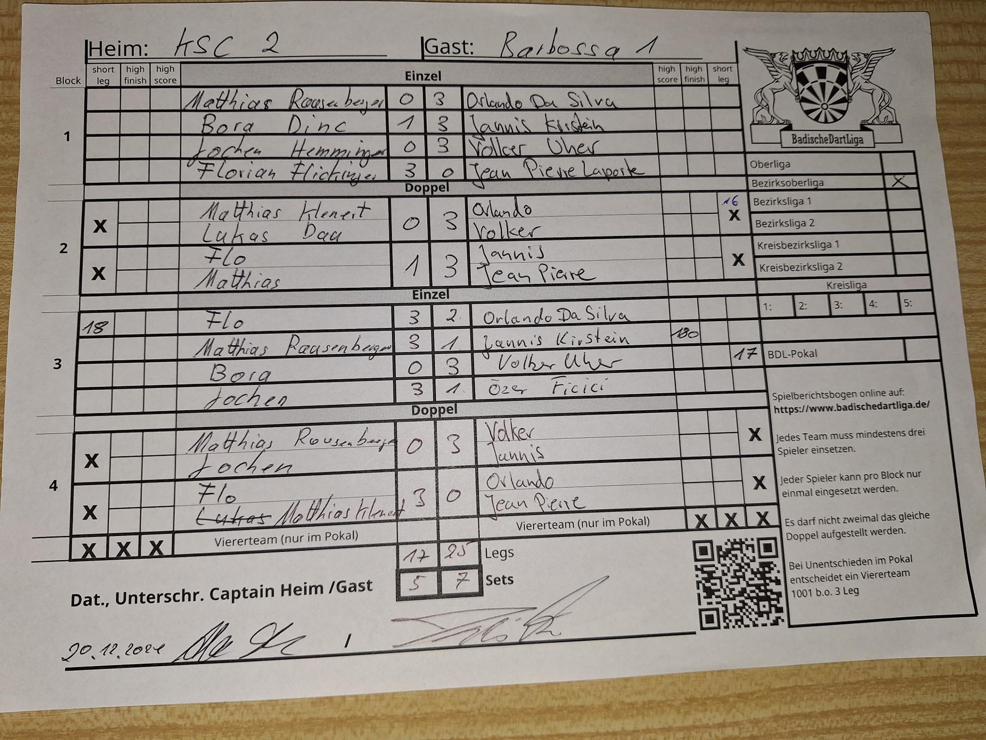 | Ergebnis: | 17 : 25 | - Legs | ||||||