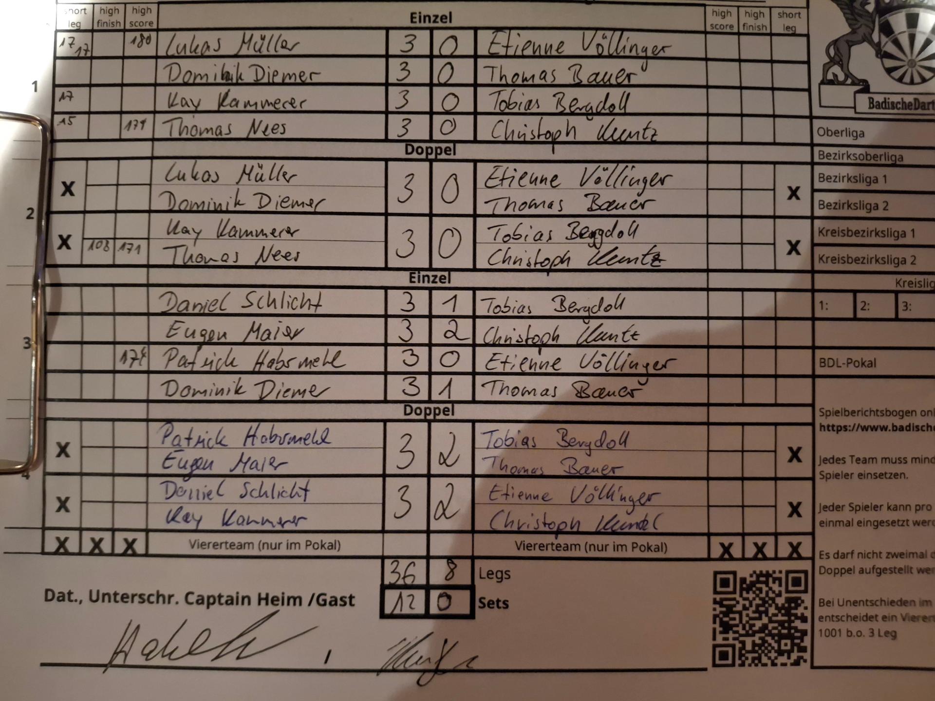 | Ergebnis: | 36 : 8 | - Legs | ||||||