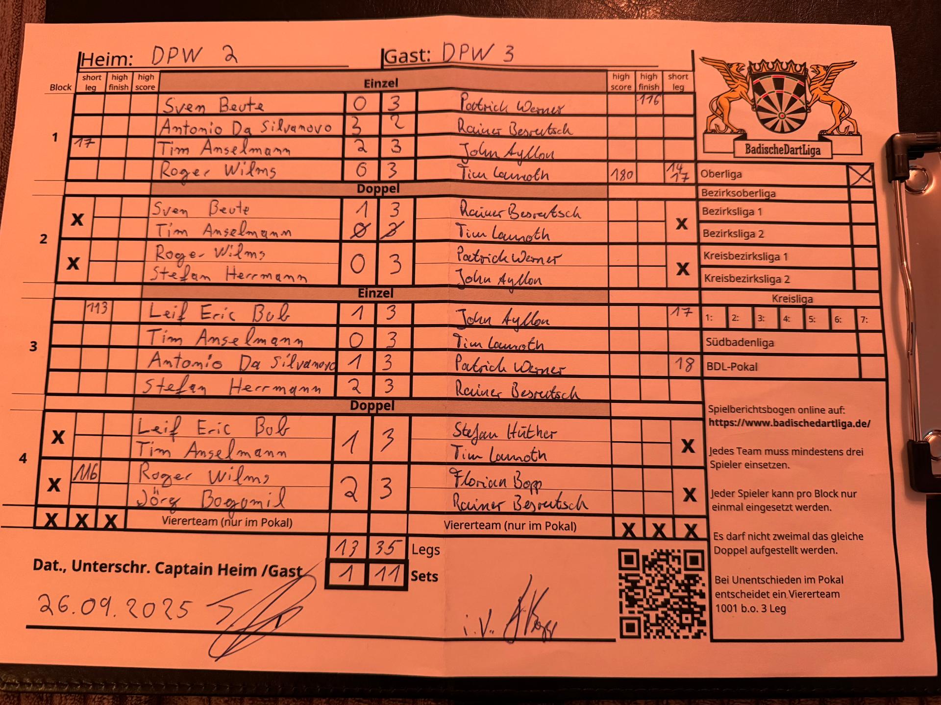 Ergebnis: | 13 : 35 | - Legs | ||||||