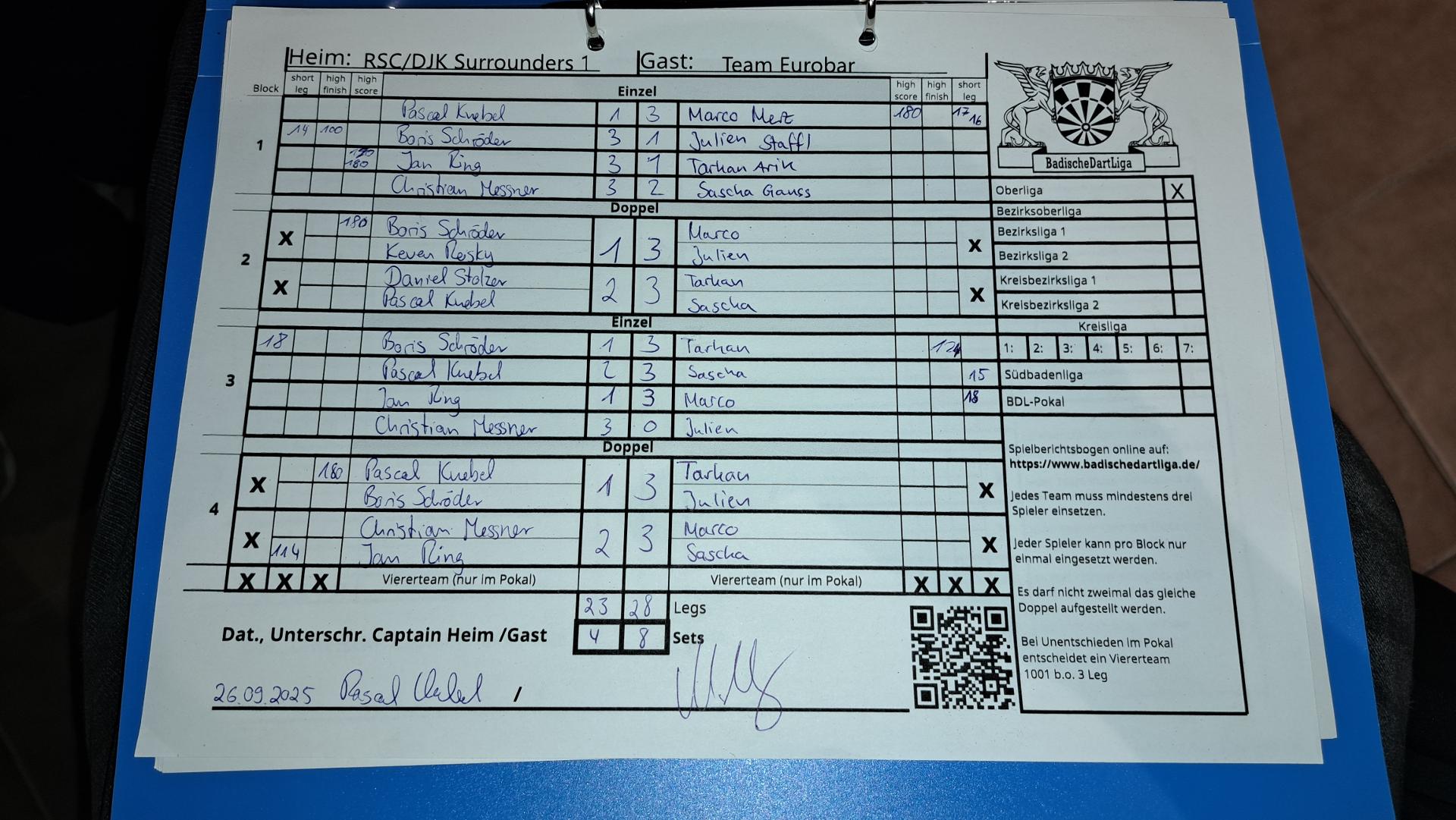 | Ergebnis: | 23 : 28 | - Legs | ||||||