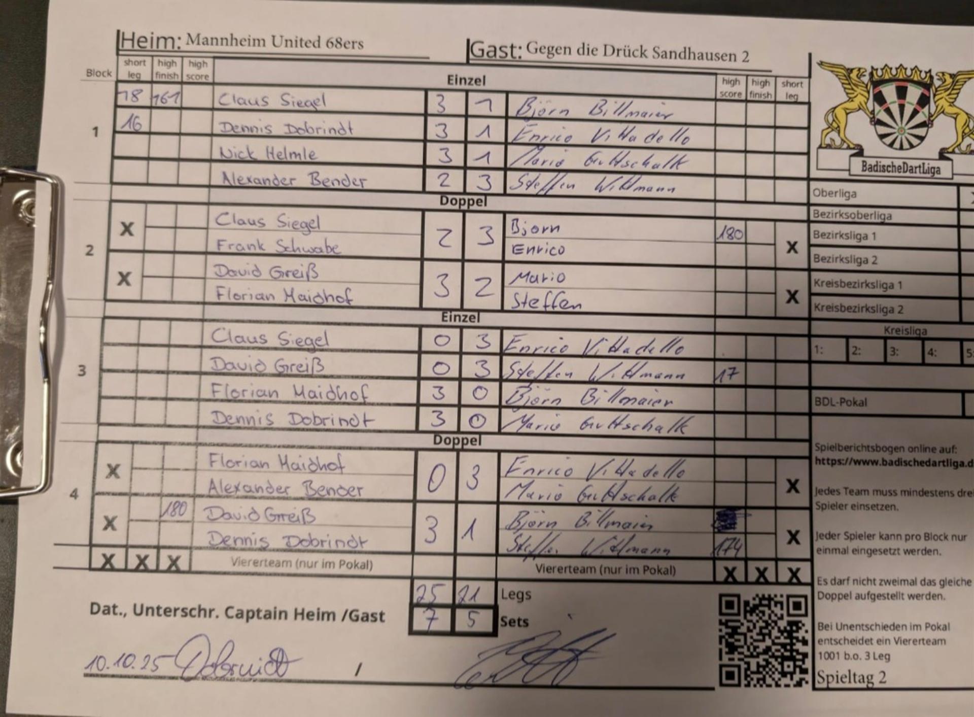 | Ergebnis: | 25 : 21 | - Legs | ||||||