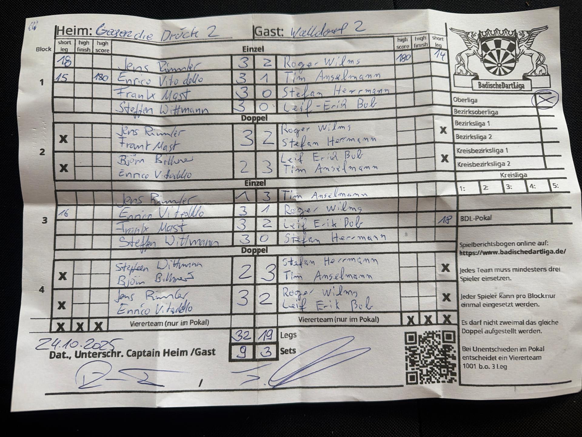 | Ergebnis: | 32 : 19 | - Legs | ||||||