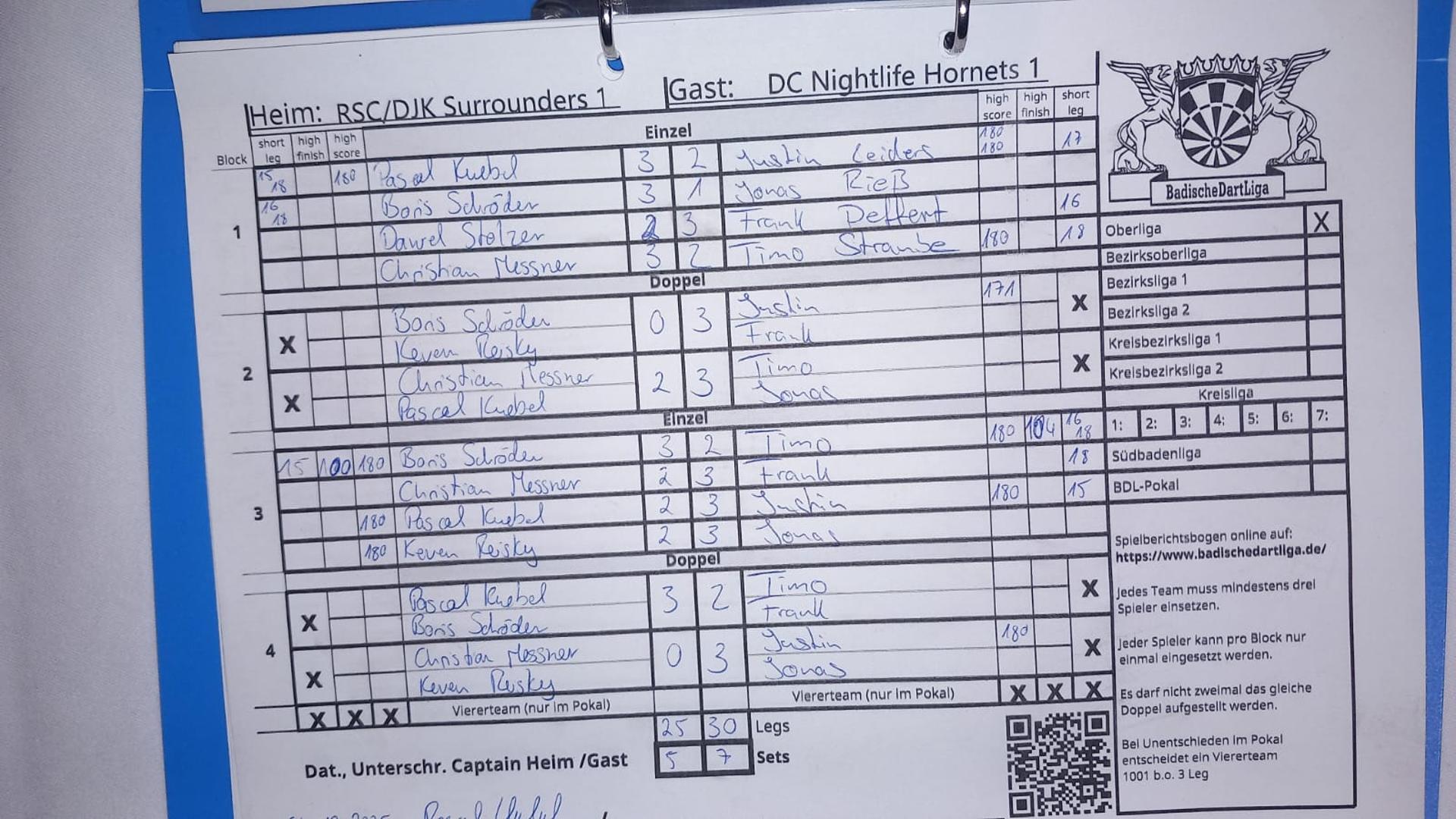 | Ergebnis: | 25 : 30 | - Legs | ||||||