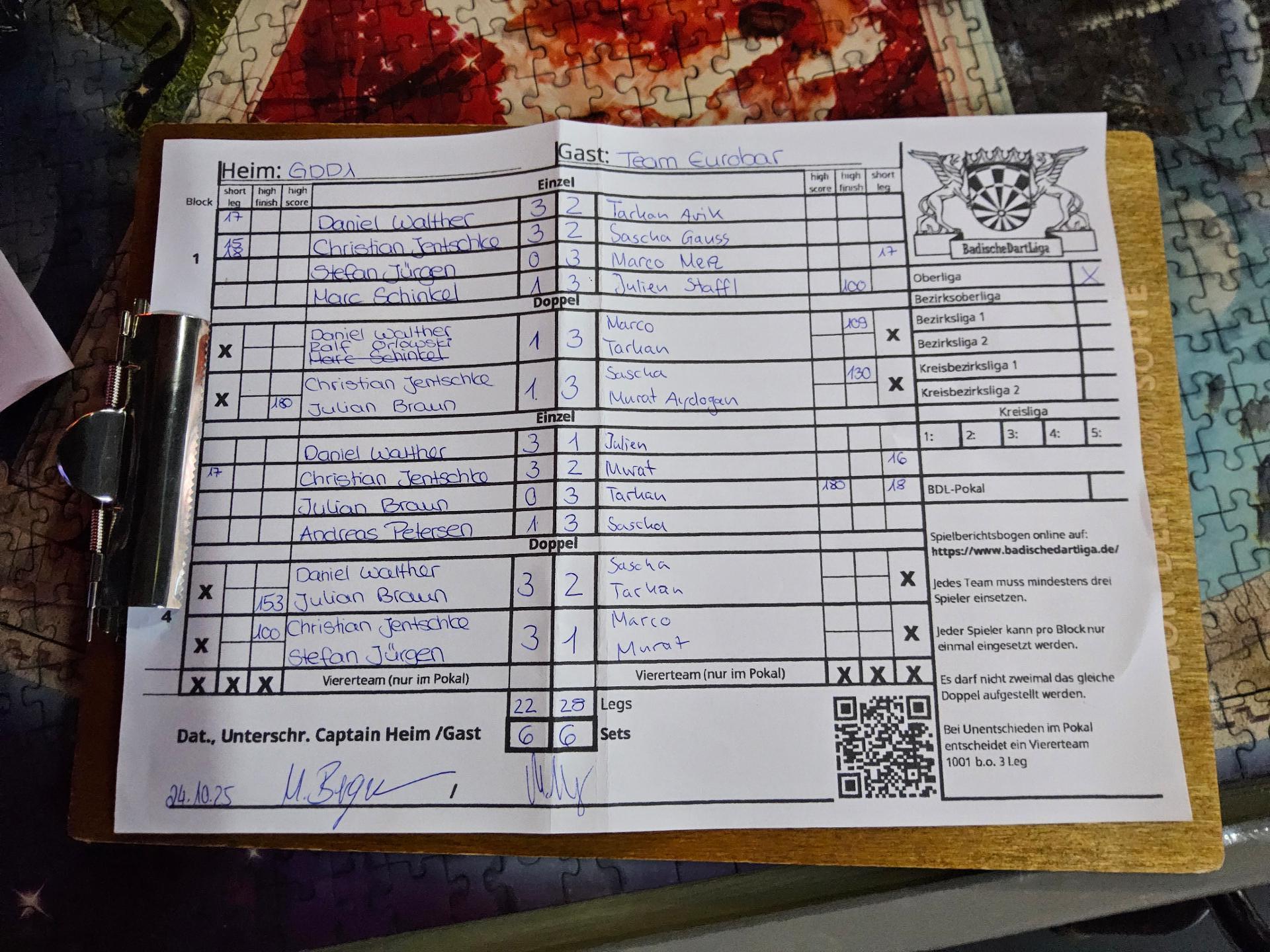 | Ergebnis: | 22 : 28 | - Legs | ||||||