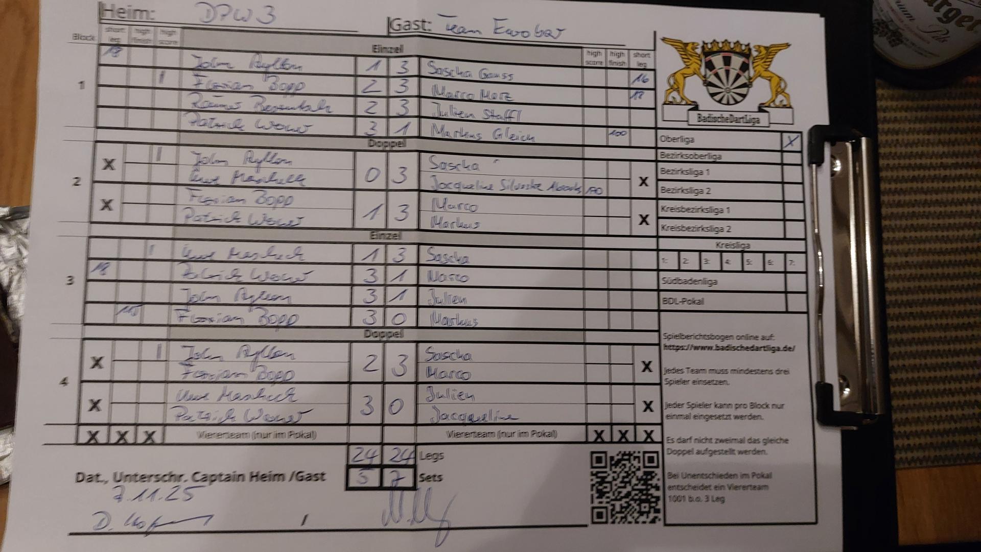 | HEIM: | Darts Pub Walldorf 3 | GAST: | Team Eurobar | |||||