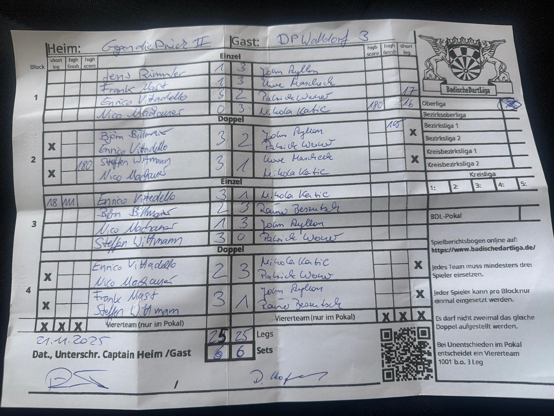 | Ergebnis: | 25 : 25 | - Legs | ||||||