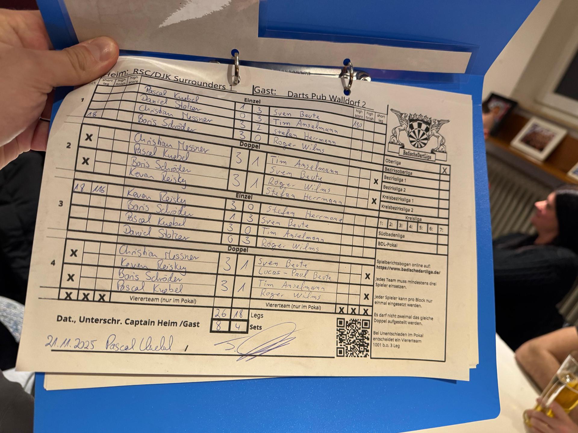 | Ergebnis: | 26 : 18 | - Legs | ||||||