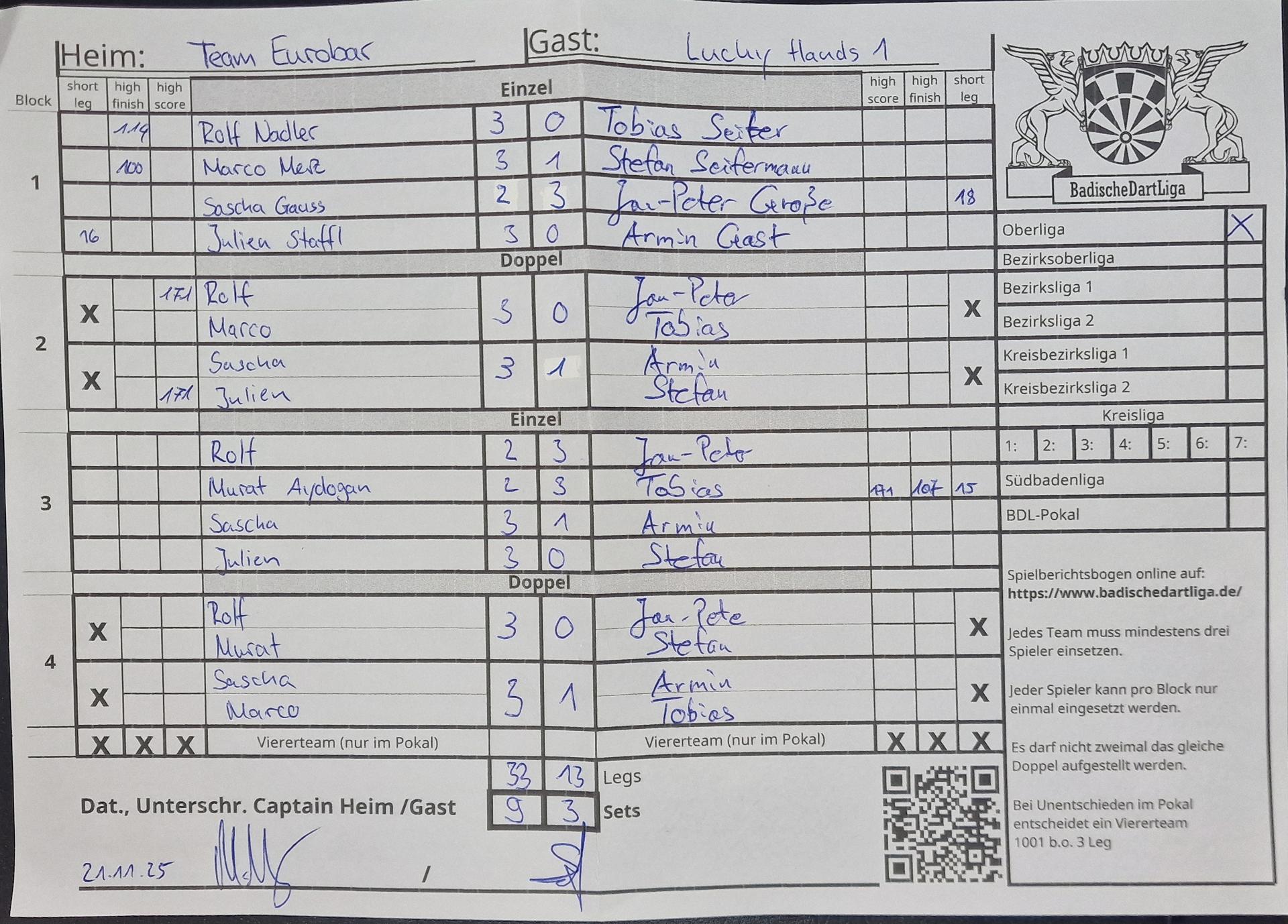 | Ergebnis: | 33 : 13 | - Legs | ||||||