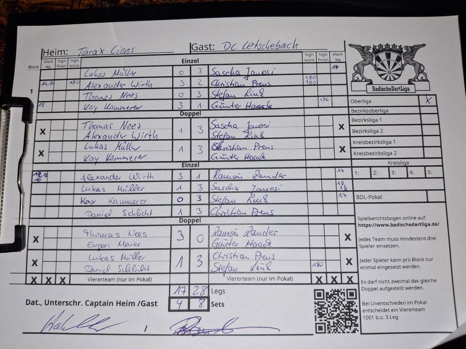 | Ergebnis: | 17 : 28 | - Legs | ||||||