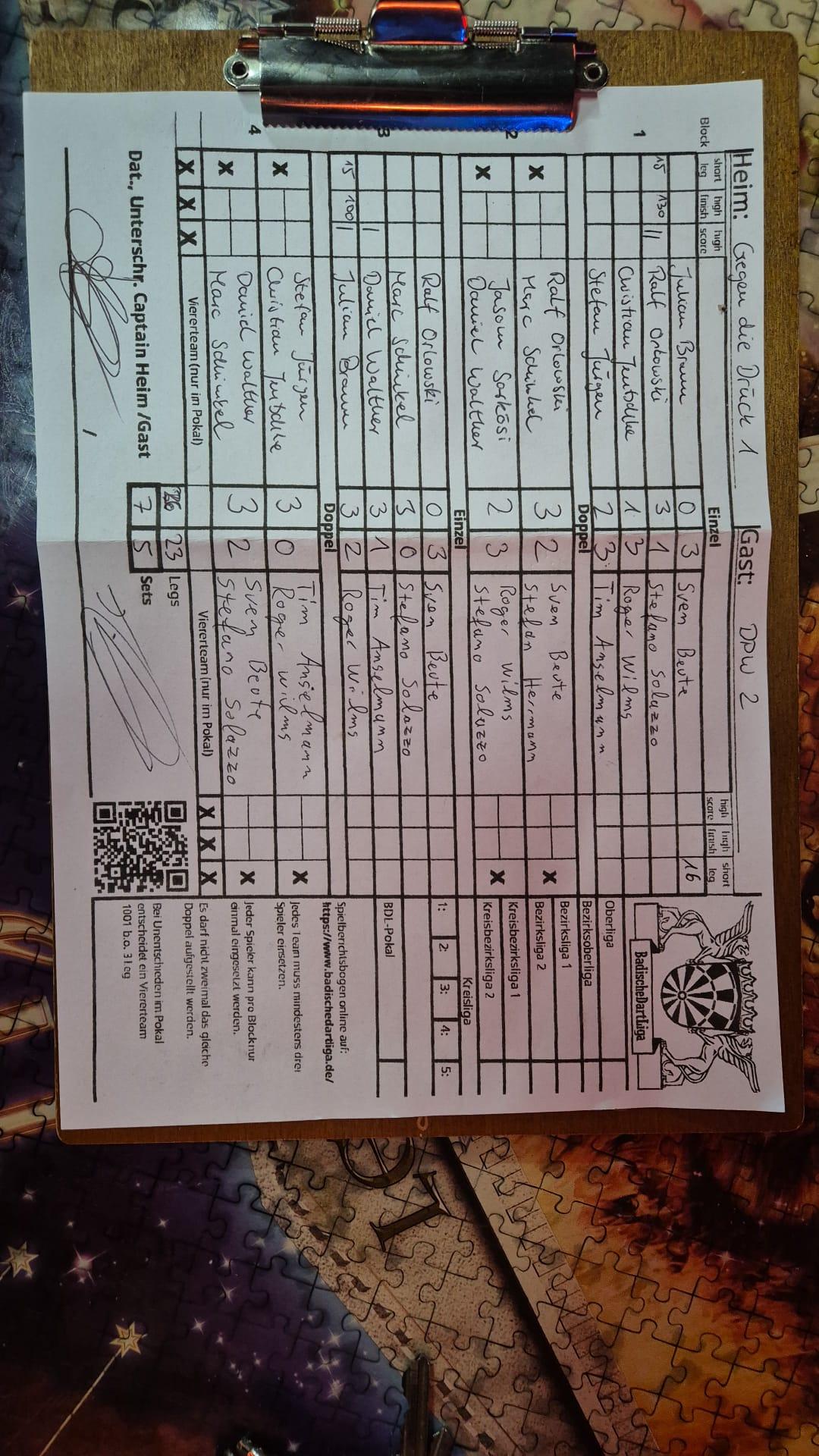 | Ergebnis: | 26 : 23 | - Legs | ||||||
