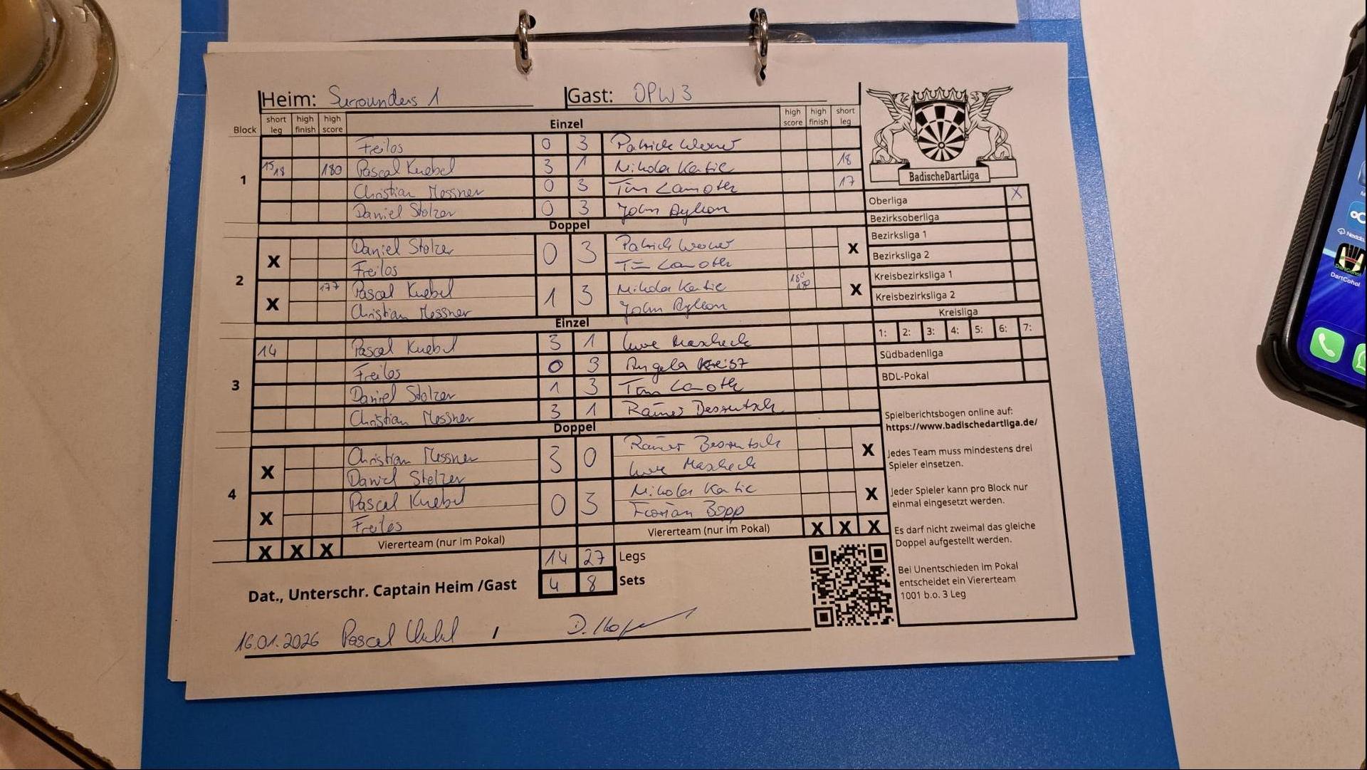 | HEIM: | Rastatter SC/DJK Surrounders 1 | GAST: | Darts Pub Walldorf 3 | |||||