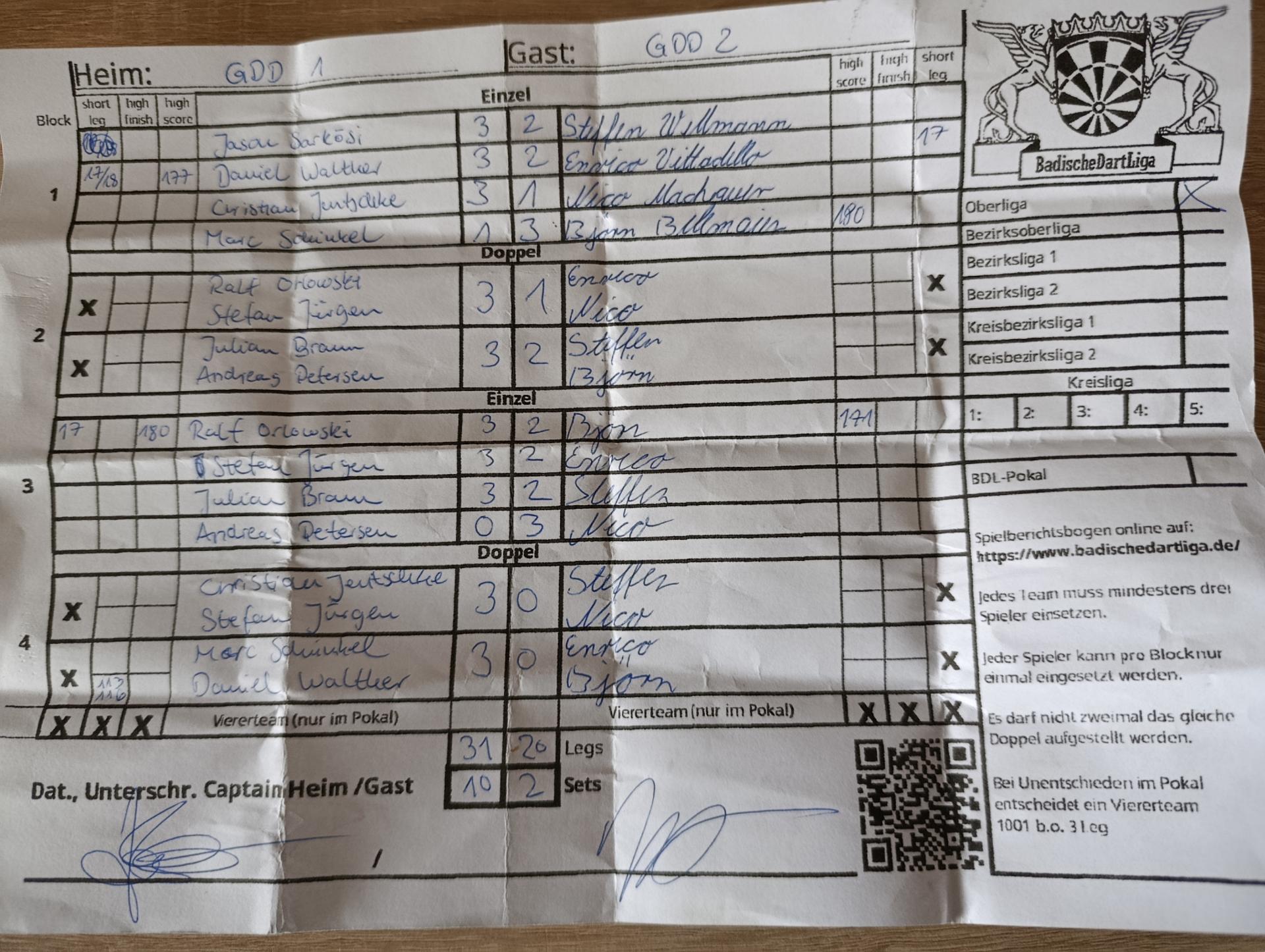 | Ergebnis: | 31 : 20 | - Legs | ||||||