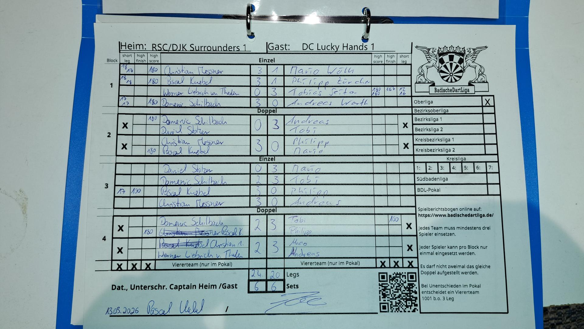 | Ergebnis: | 24 : 20 | - Legs | ||||||