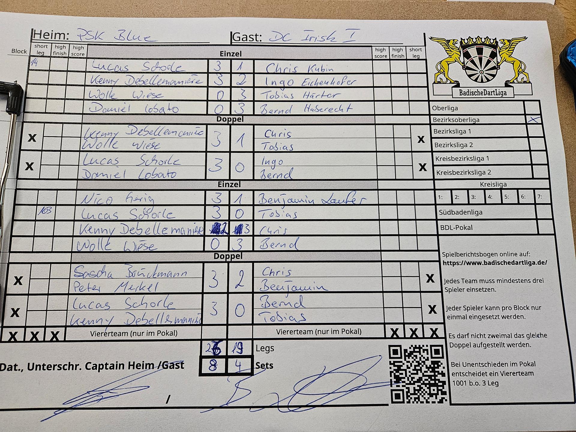 | Ergebnis: | 26 : 19 | - Legs | ||||||