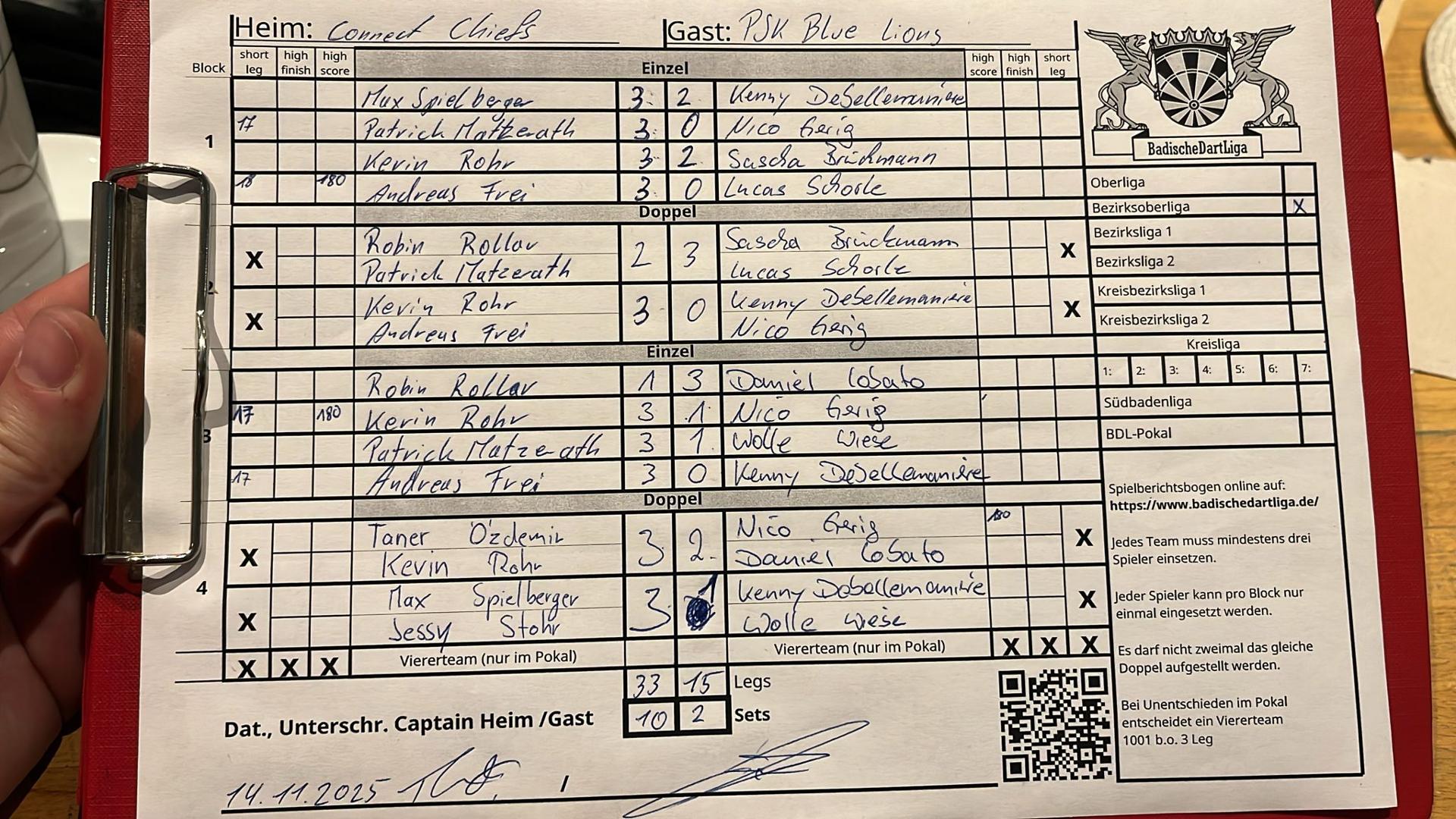 | Ergebnis: | 33 : 15 | - Legs | ||||||