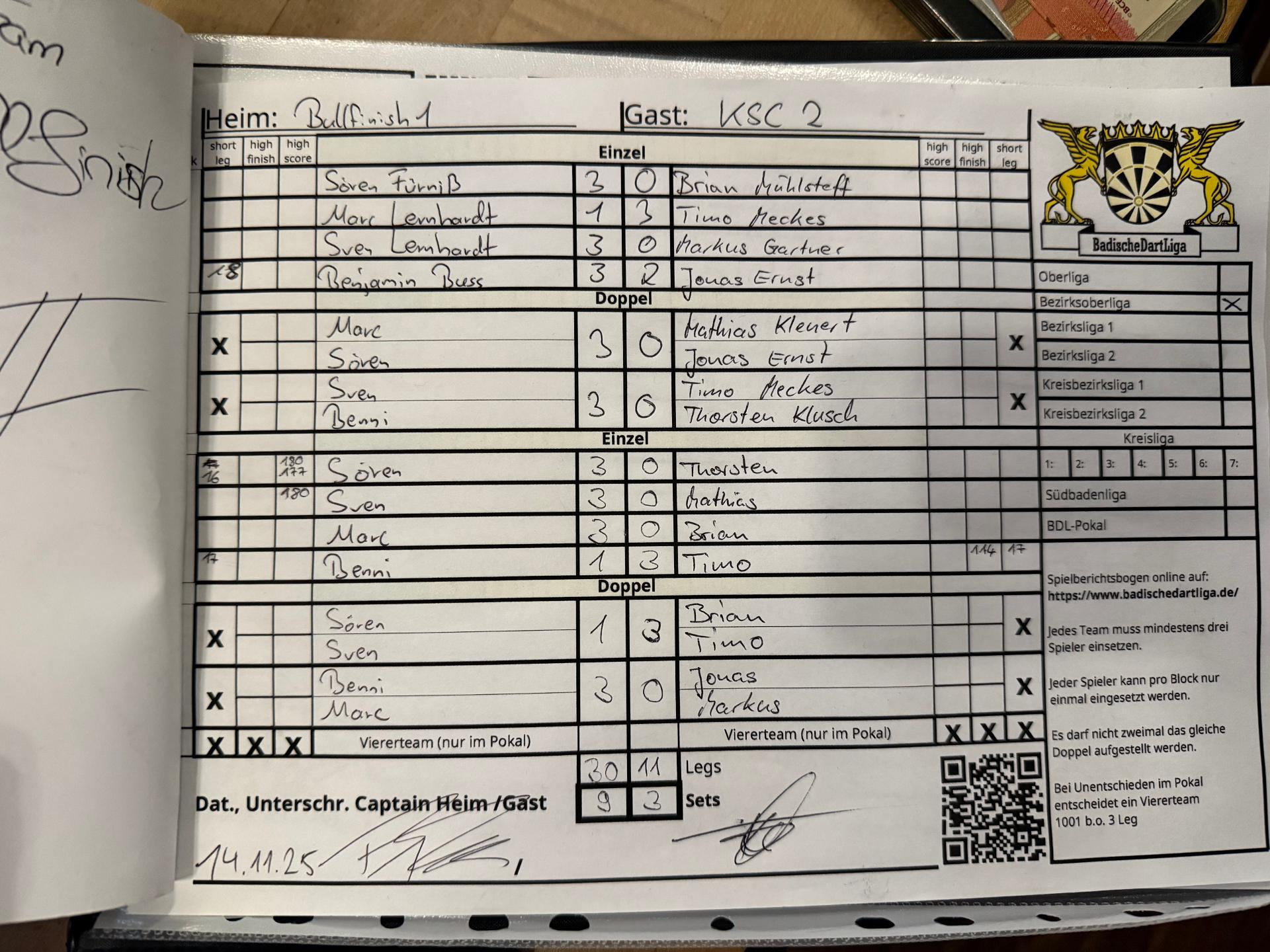 | Ergebnis: | 30 : 11 | - Legs | ||||||