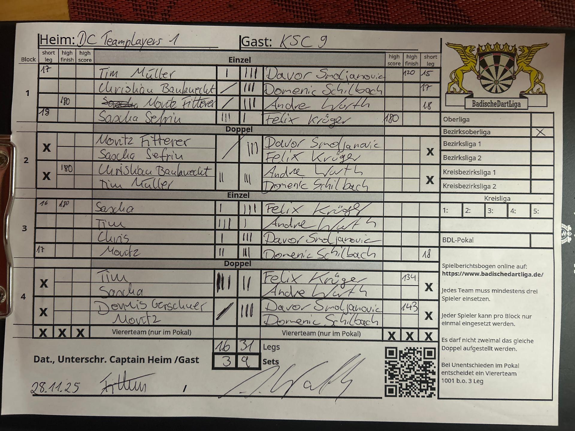 | Ergebnis: | 16 : 31 | - Legs | ||||||