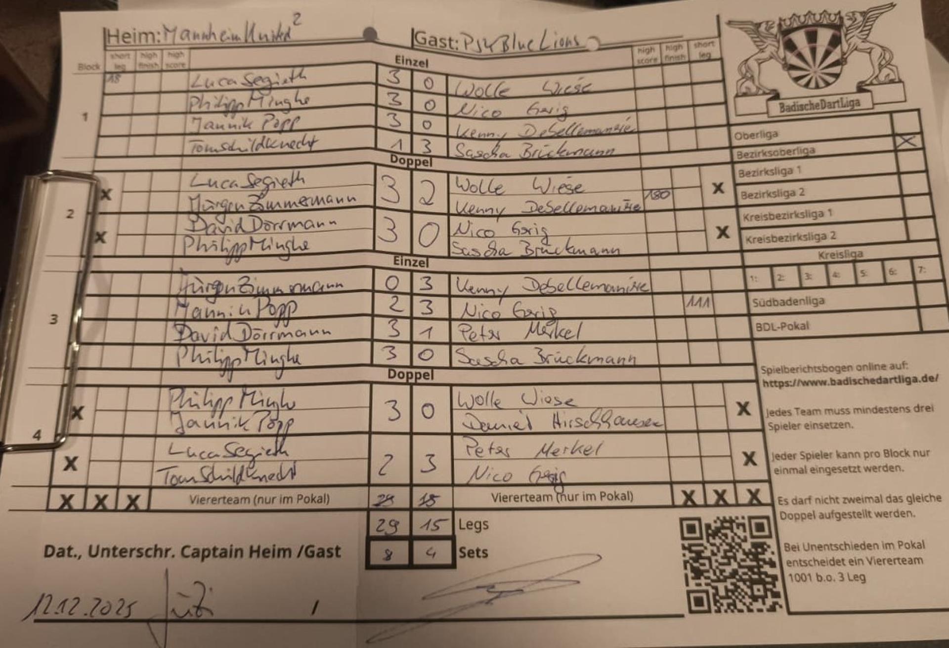 | Ergebnis: | 29 : 15 | - Legs | ||||||