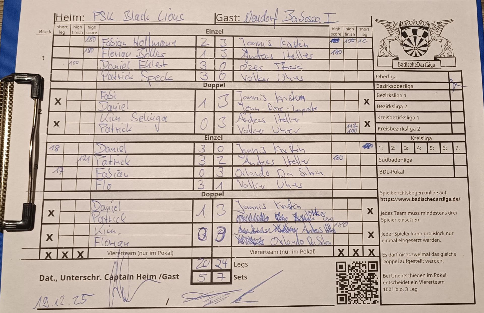 | Ergebnis: | 20 : 24 | - Legs | ||||||