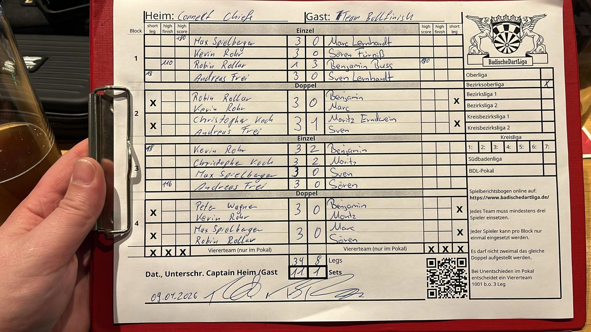 | Ergebnis: | 34 : 8 | - Legs | ||||||