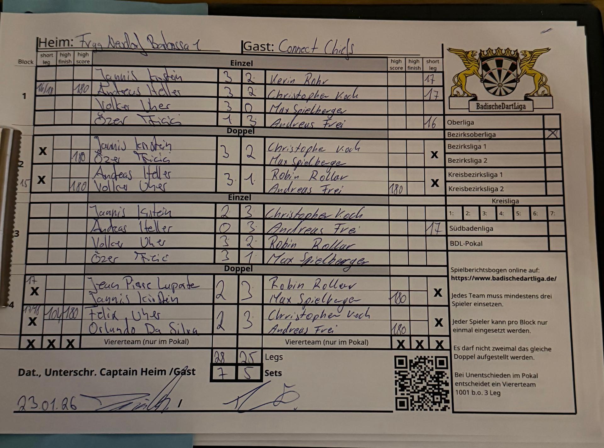 | Ergebnis: | 28 : 25 | - Legs | ||||||