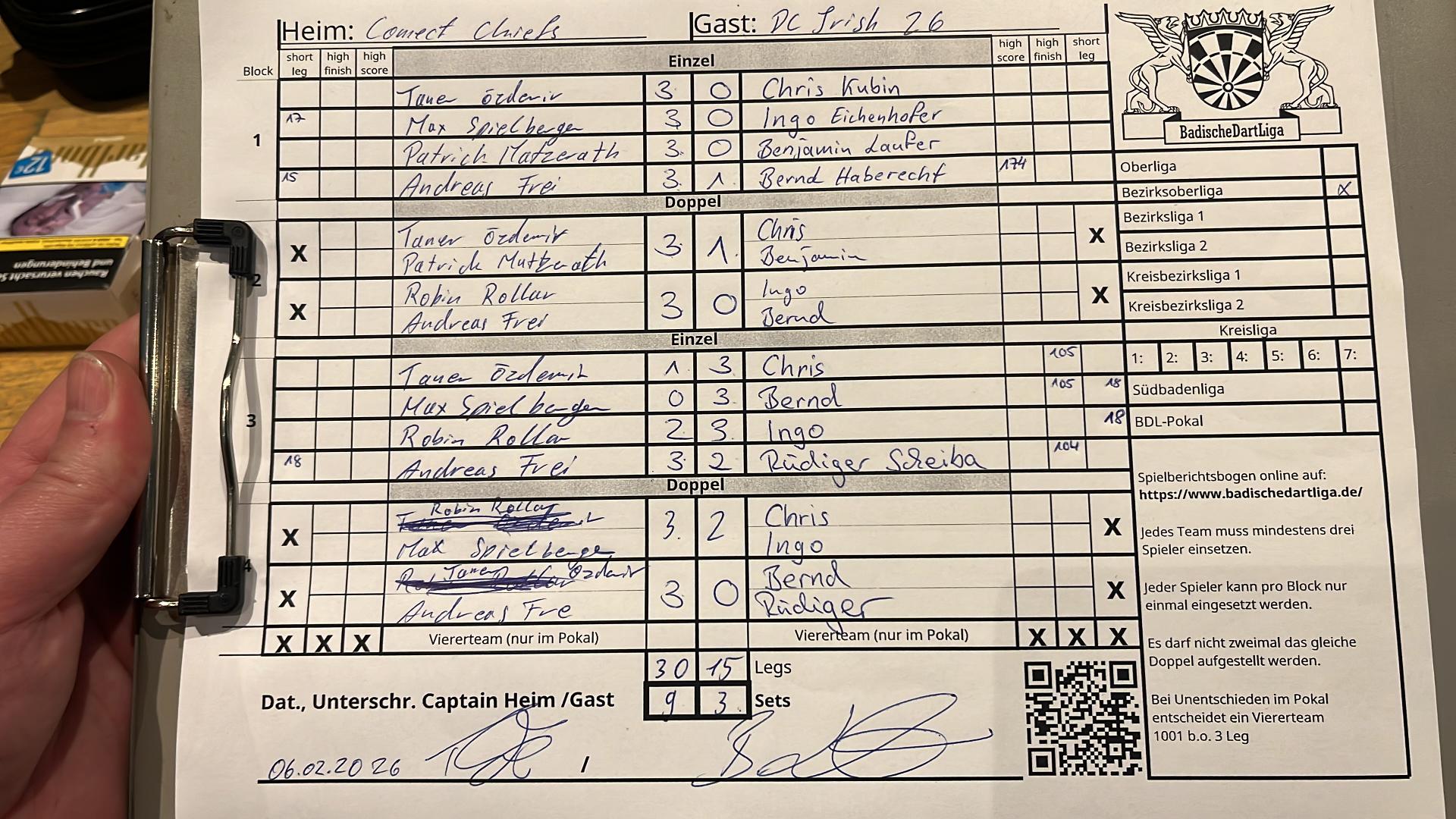 | Ergebnis: | 30 : 15 | - Legs | ||||||