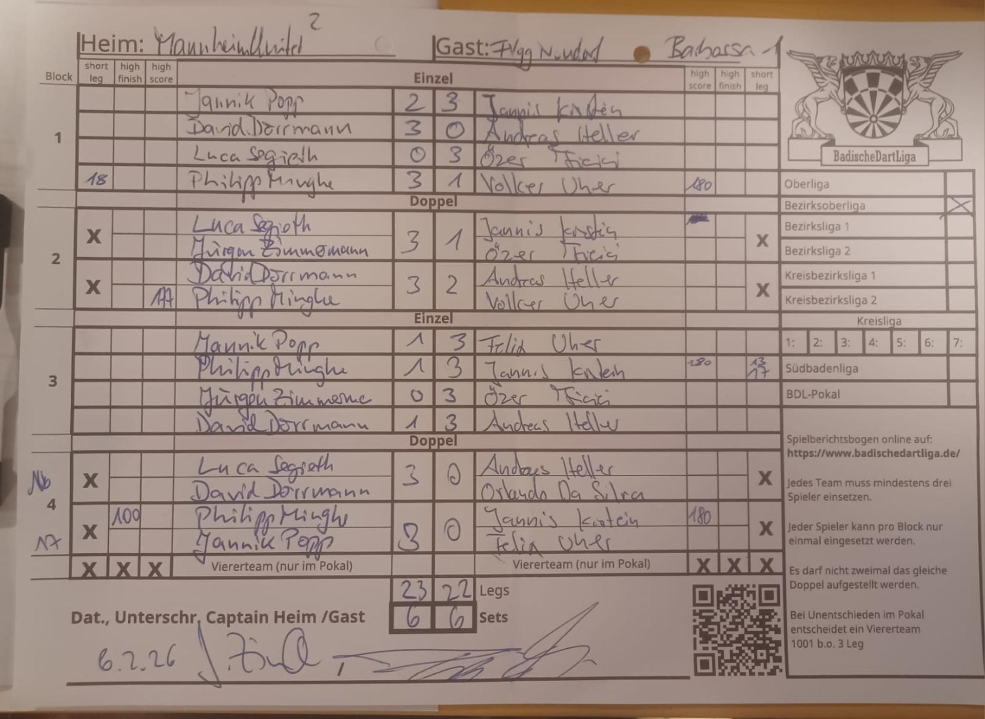 | Ergebnis: | 23 : 22 | - Legs | ||||||
