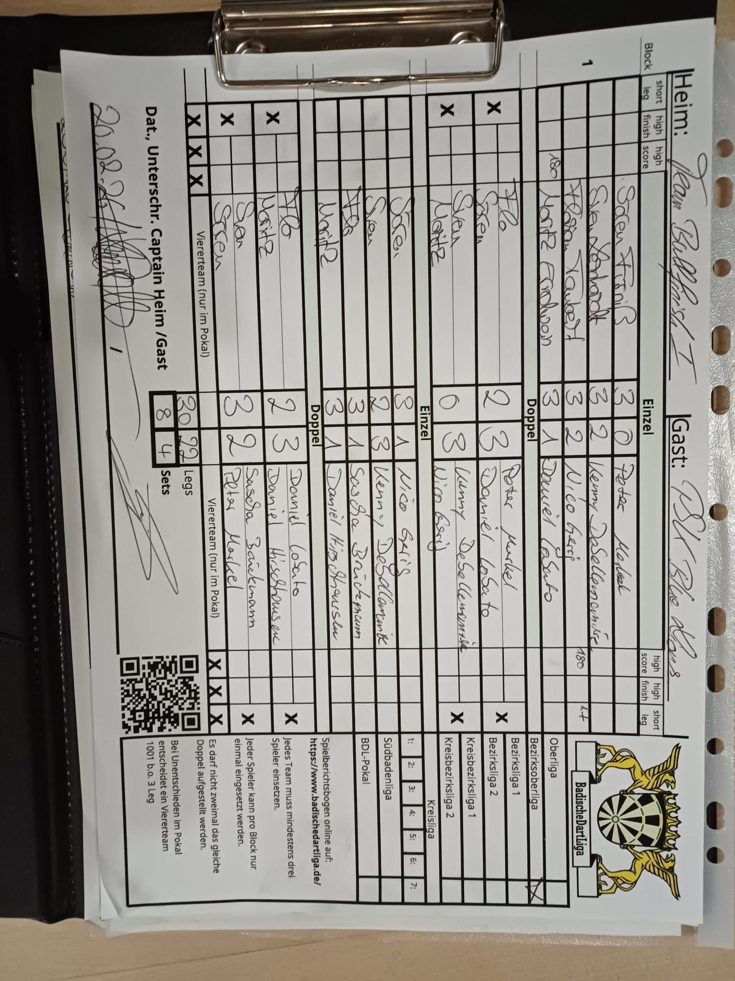 | Ergebnis: | 30 : 22 | - Legs | ||||||