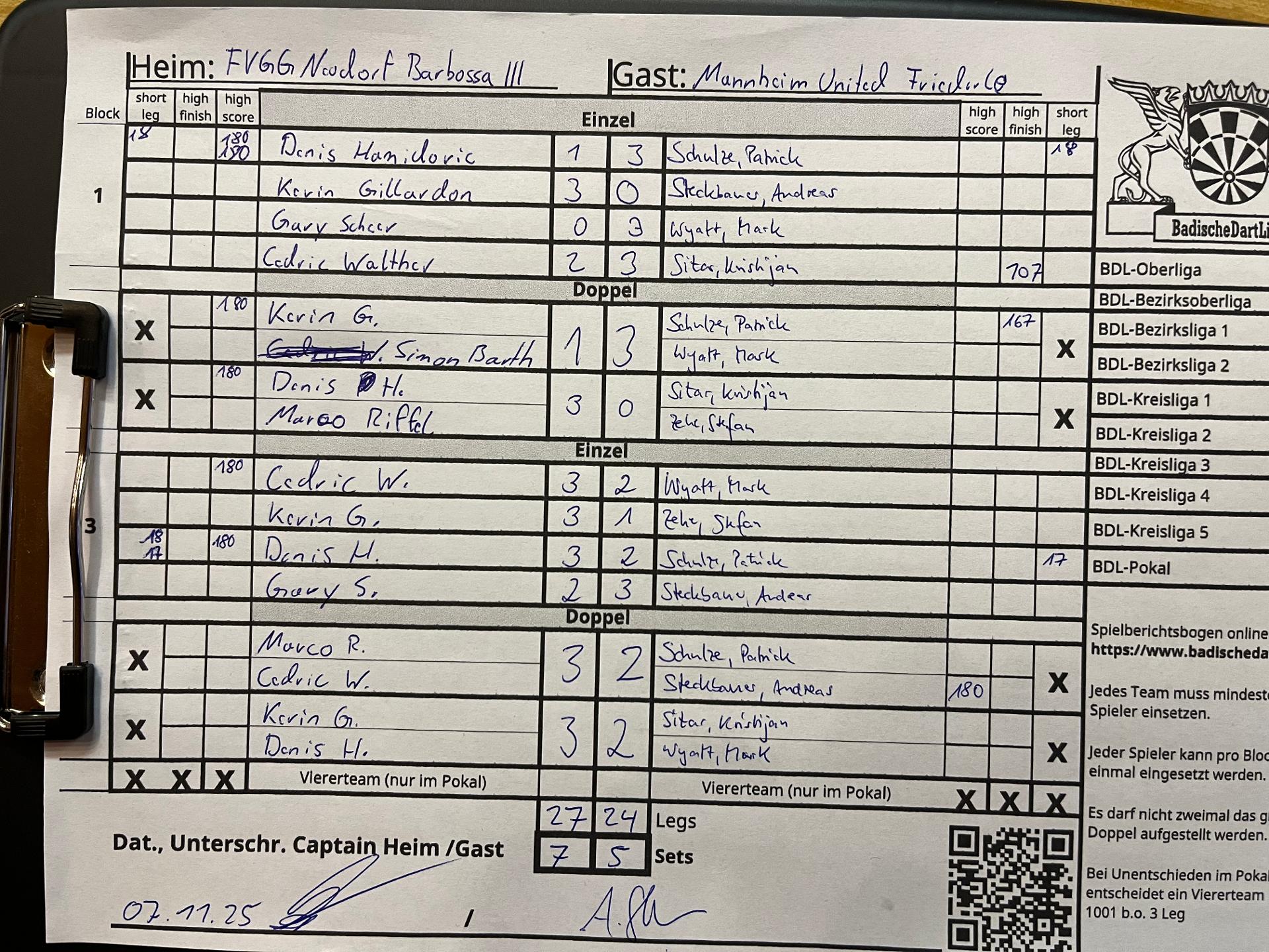 | Ergebnis: | 27 : 24 | - Legs | ||||||