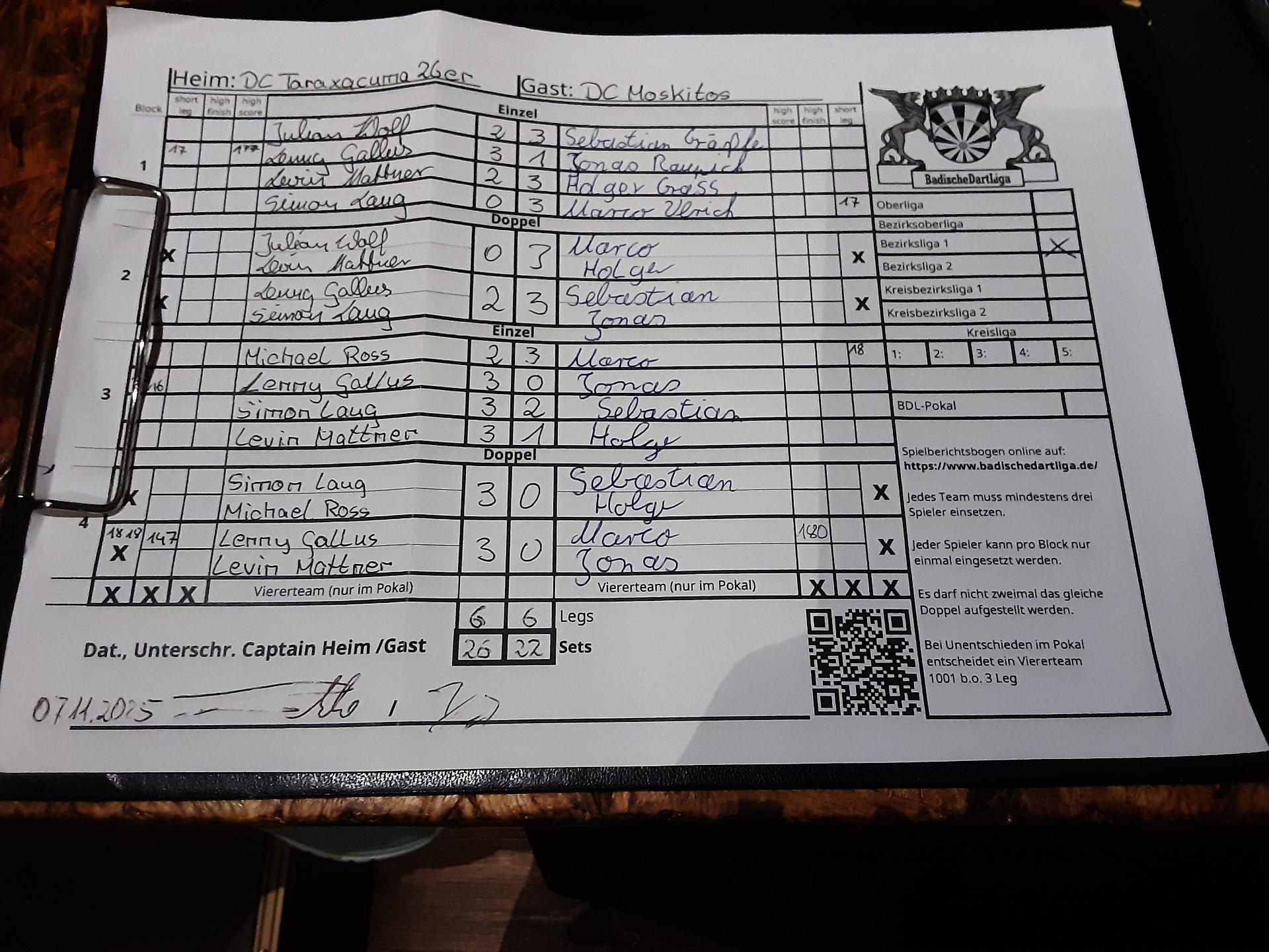 | Ergebnis: | 26 : 22 | - Legs | ||||||