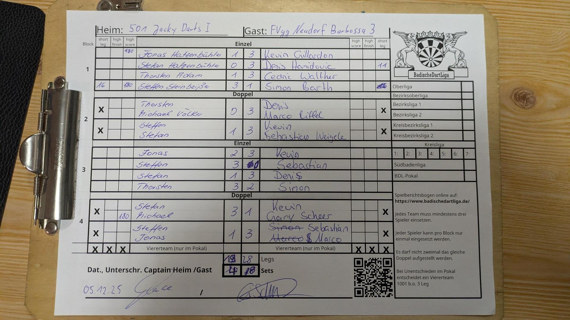 | Ergebnis: | 19 : 28 | - Legs | ||||||