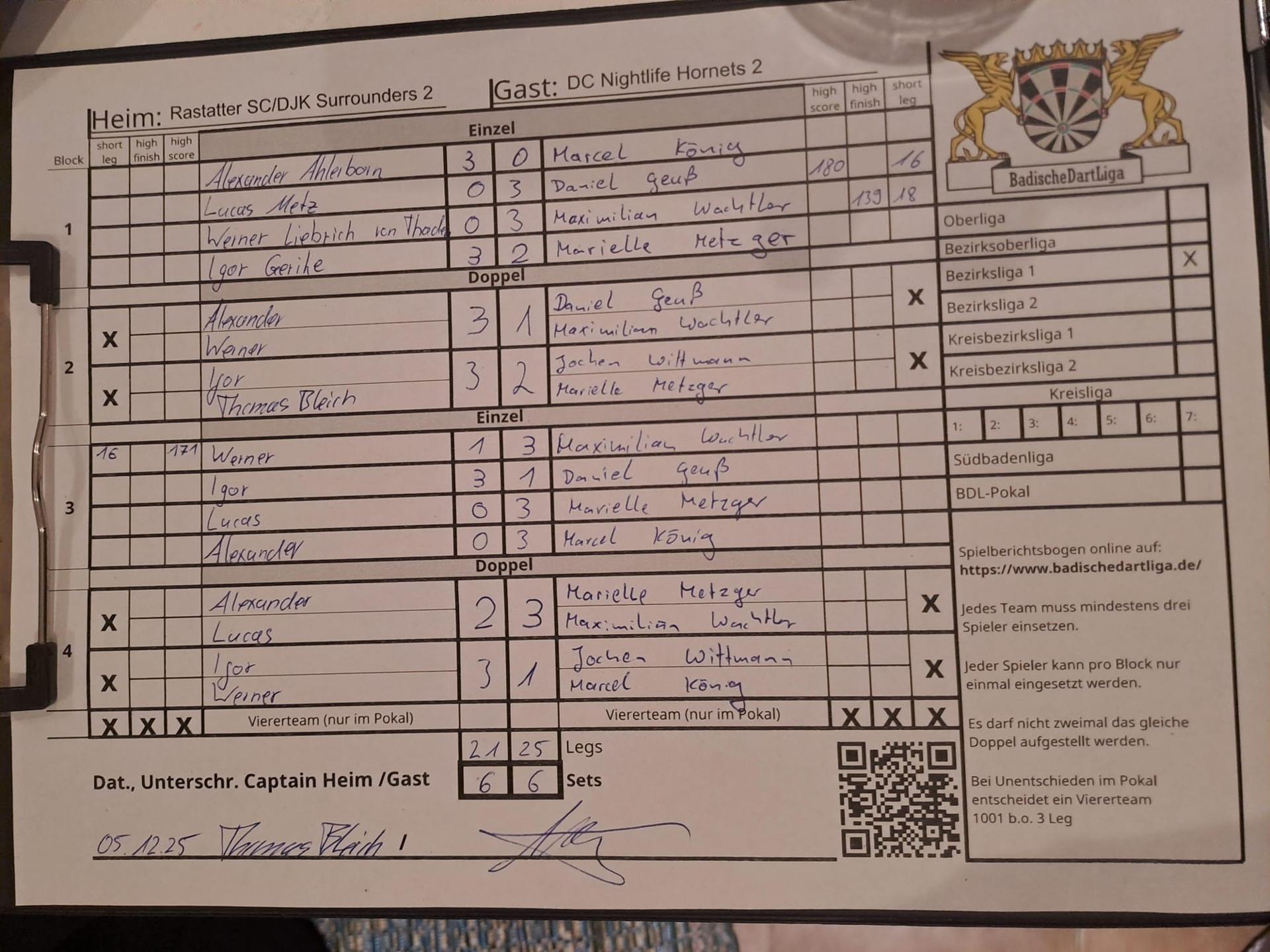 | Ergebnis: | 21 : 25 | - Legs | ||||||