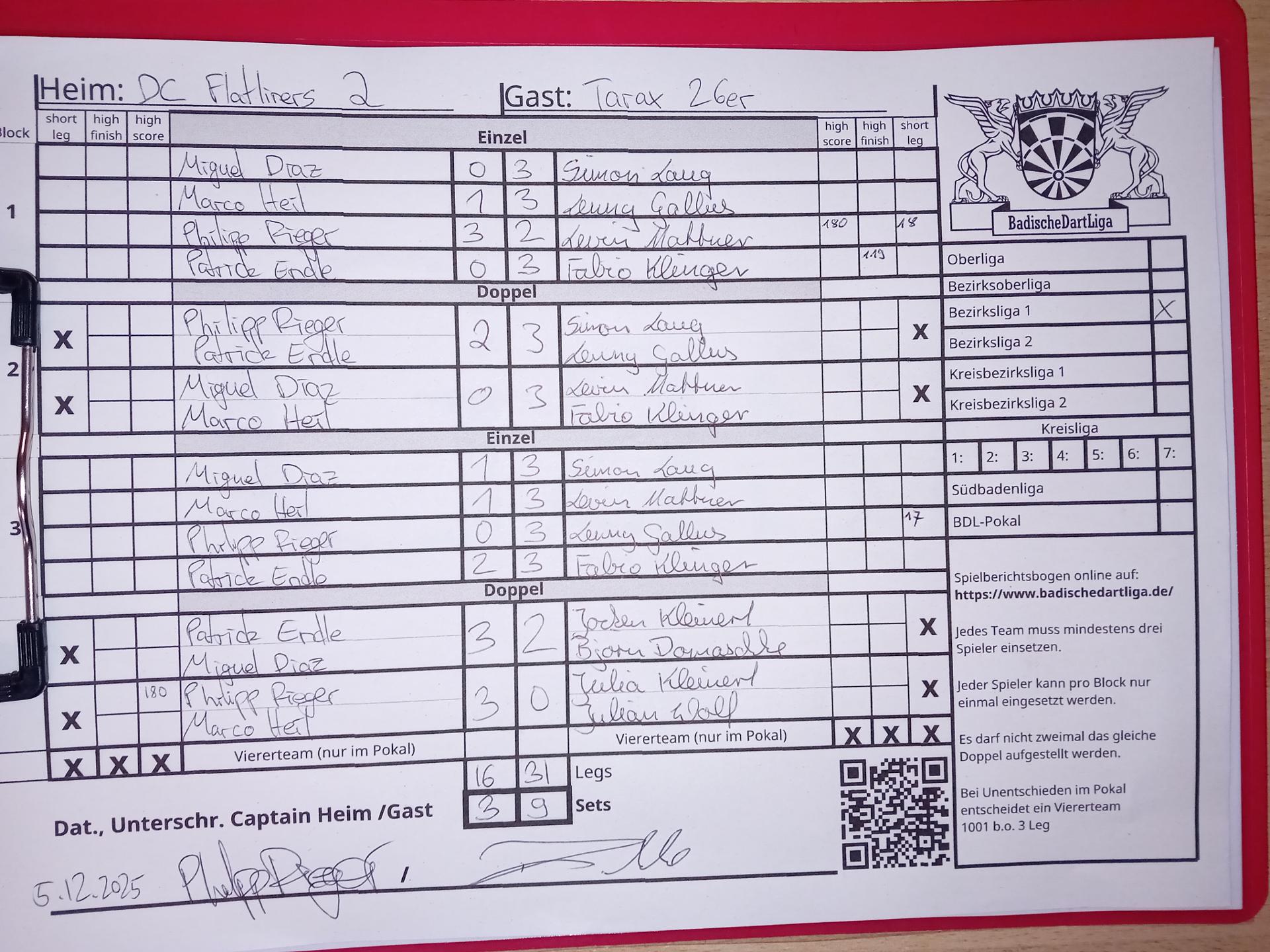 | Ergebnis: | 16 : 31 | - Legs | ||||||