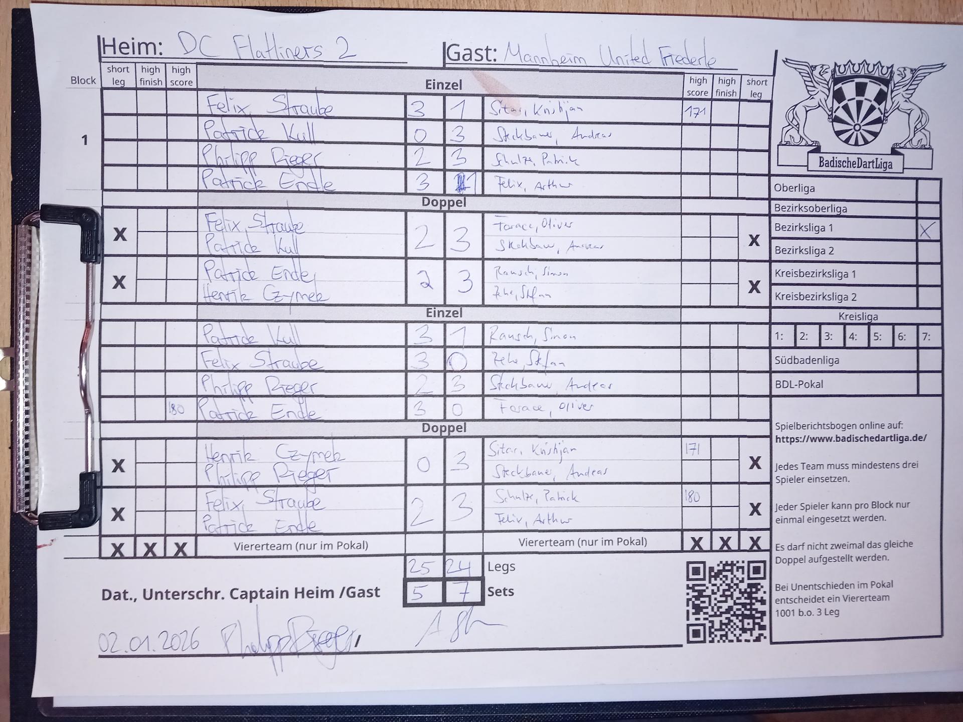 | Ergebnis: | 25 : 24 | - Legs | ||||||