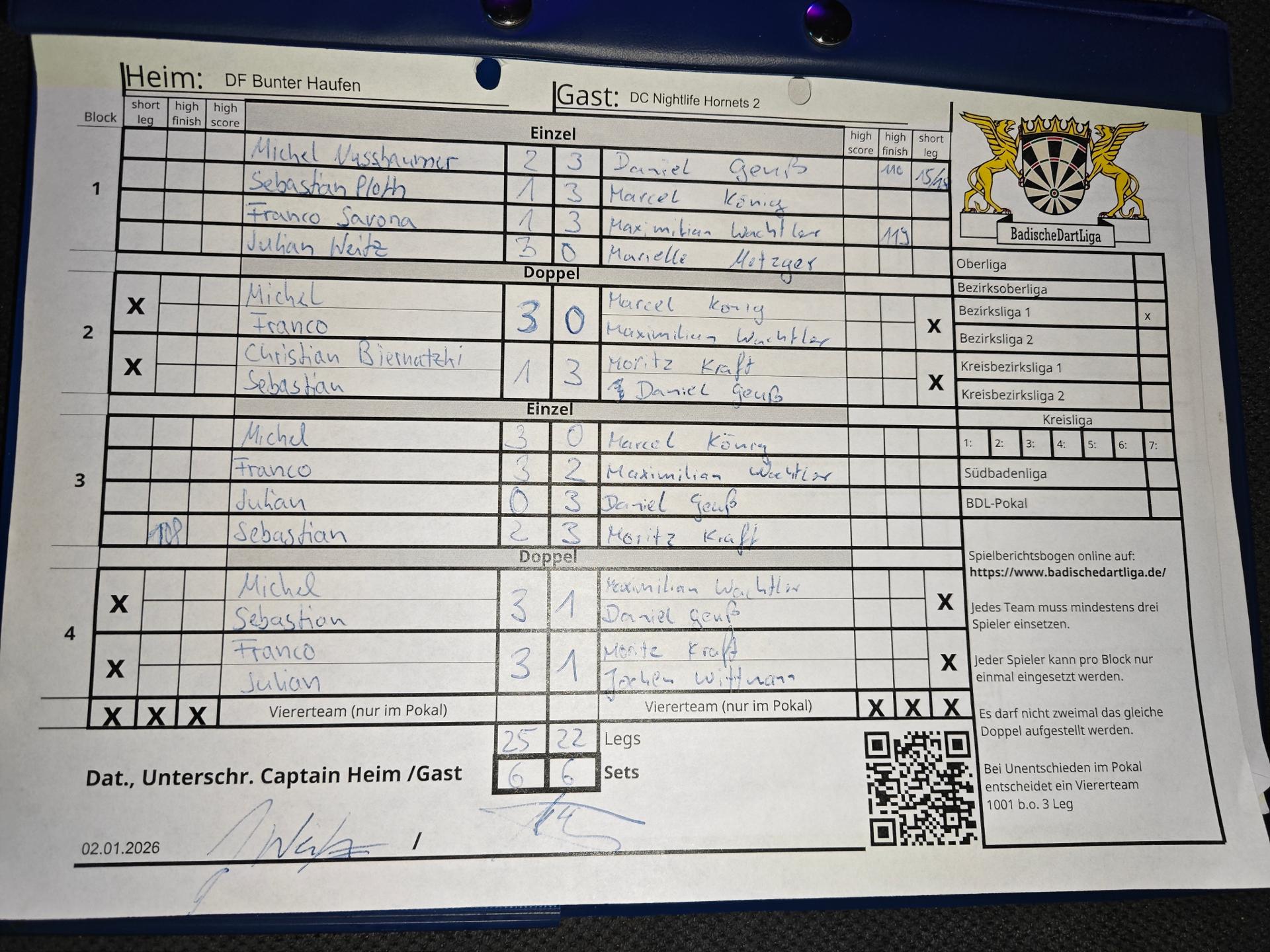 | Ergebnis: | 25 : 22 | - Legs | ||||||