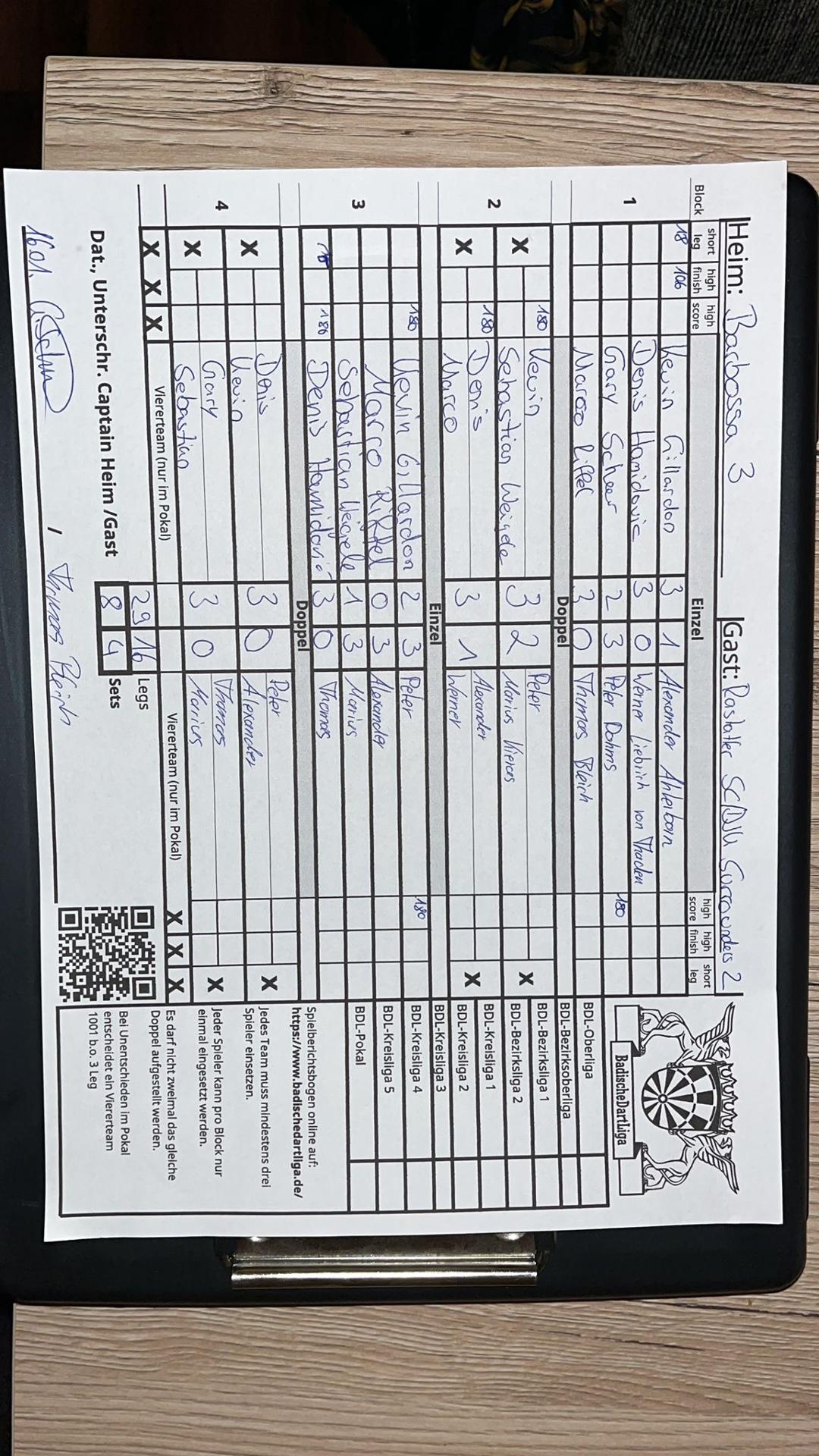 | Ergebnis: | 29 : 16 | - Legs | ||||||