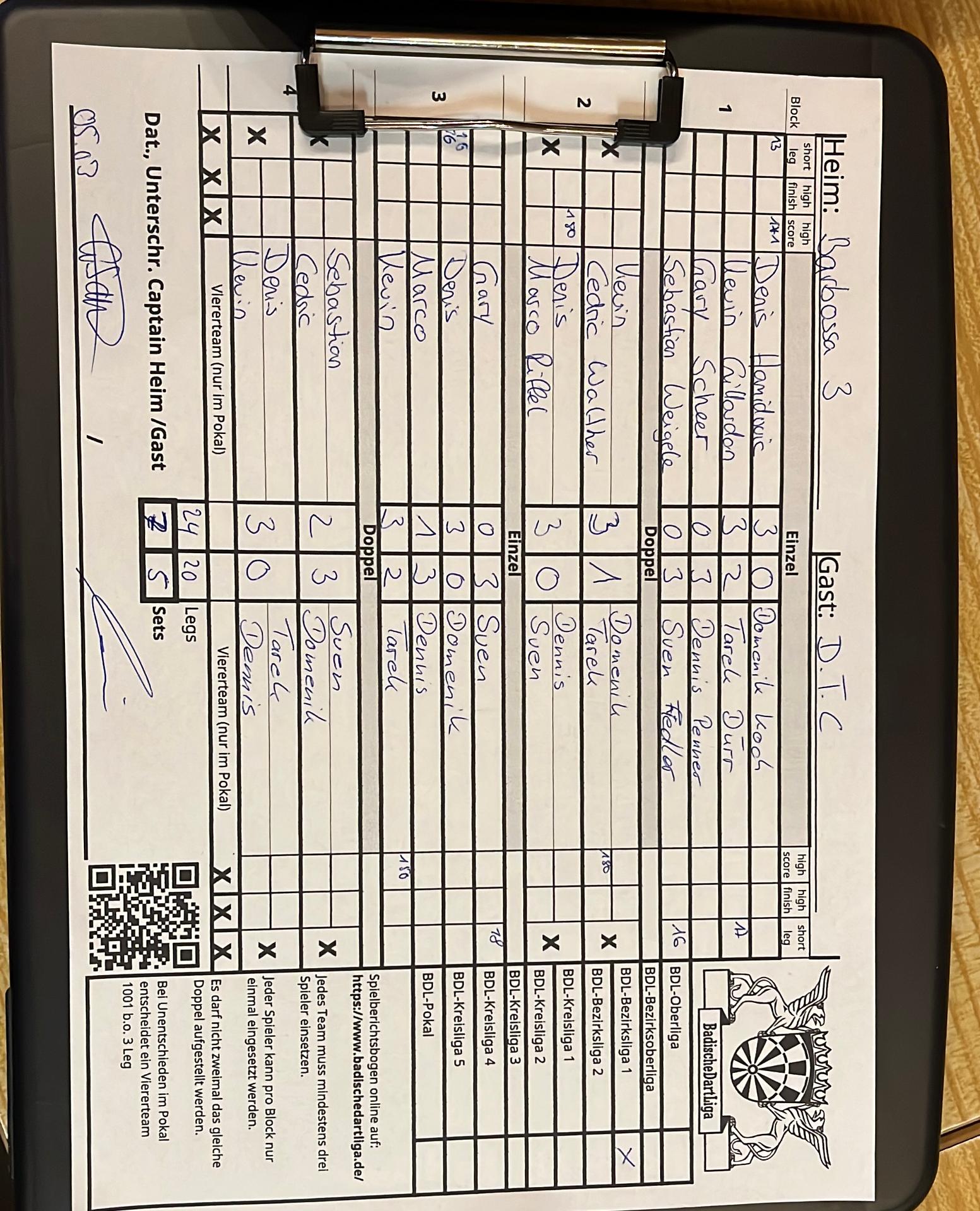 | Ergebnis: | 24 : 20 | - Legs | ||||||