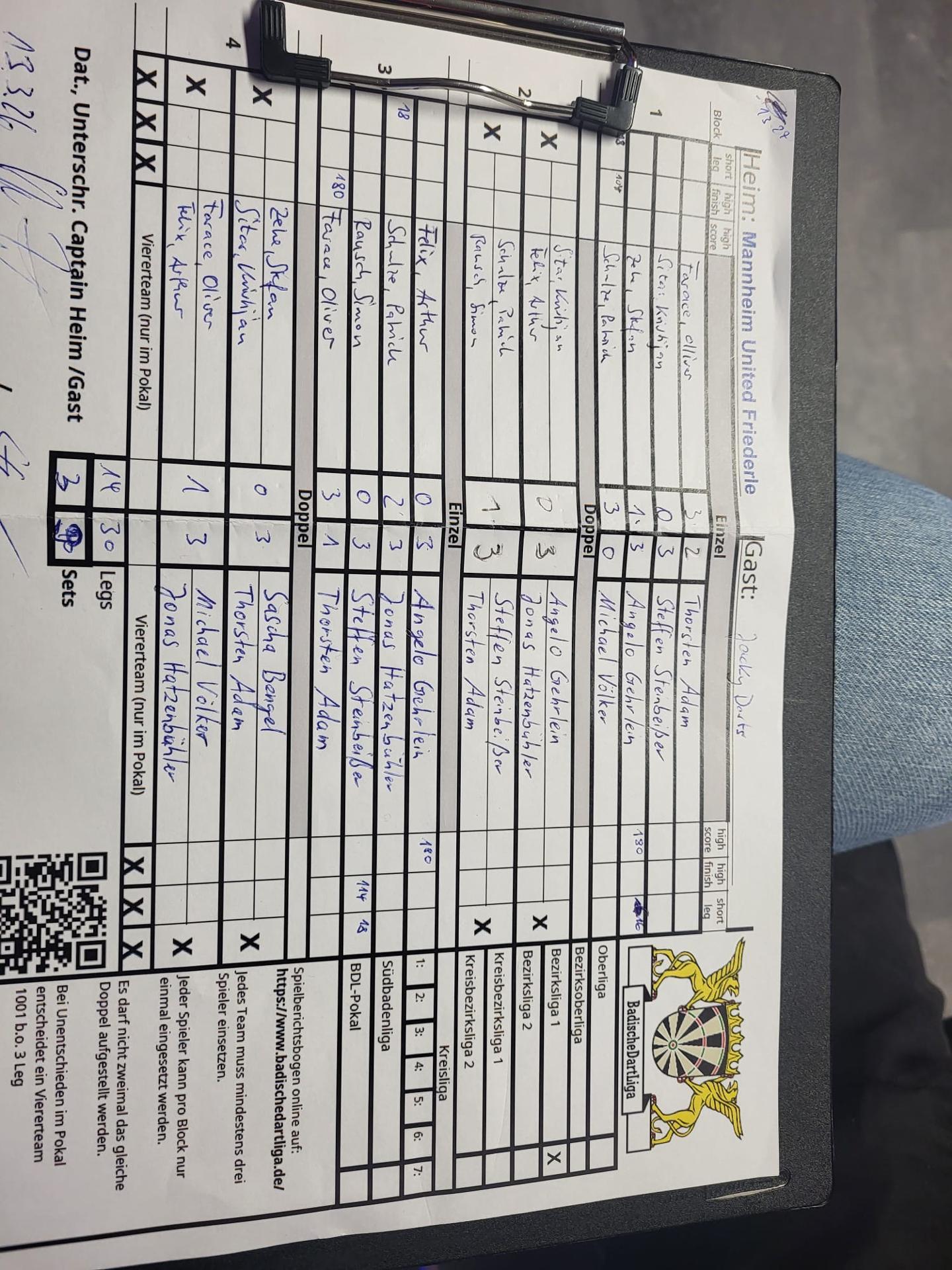 | HEIM: | Mannheim United Friederle | GAST: | 501 Jacky Darts I | |||||