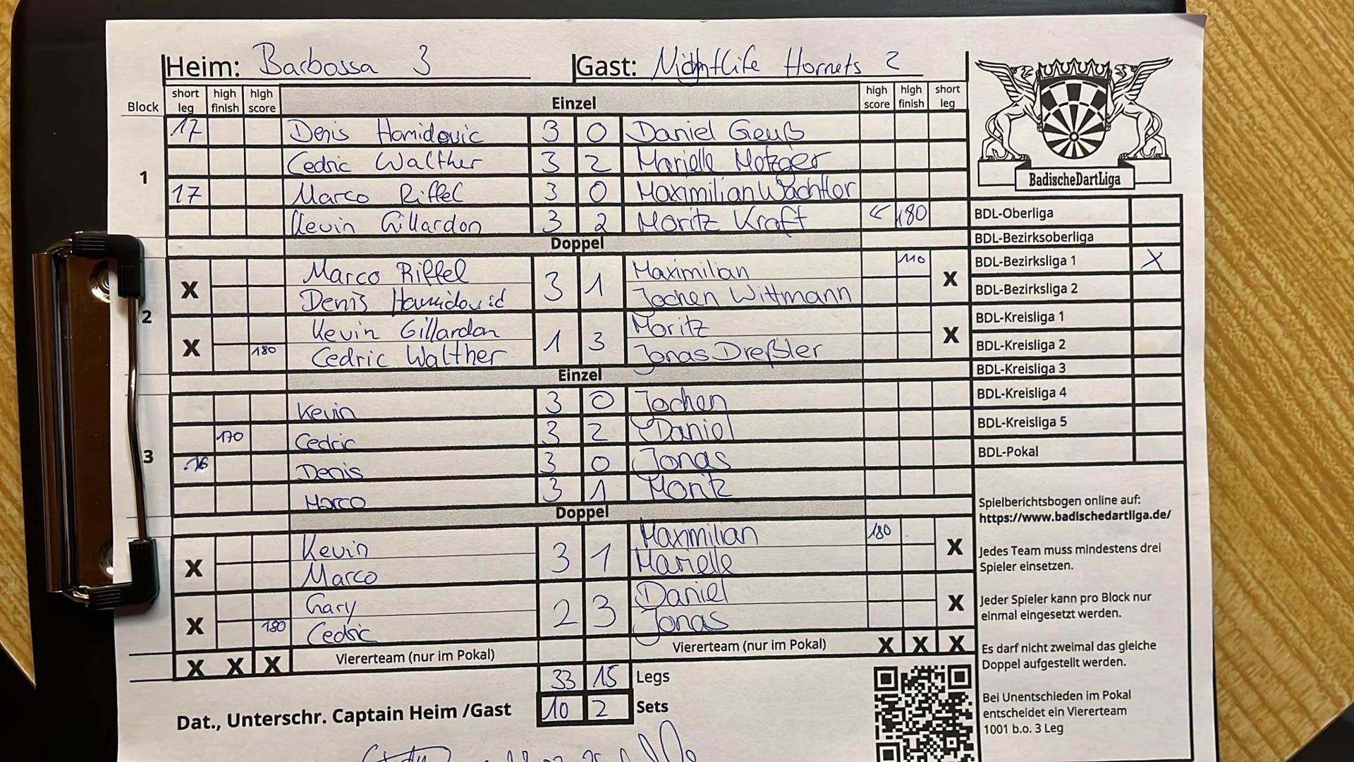 | Ergebnis: | 33 : 15 | - Legs | ||||||
